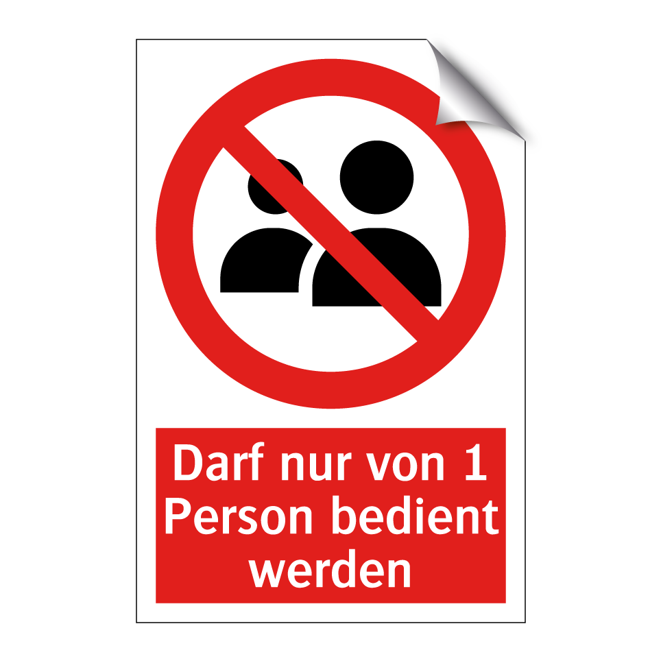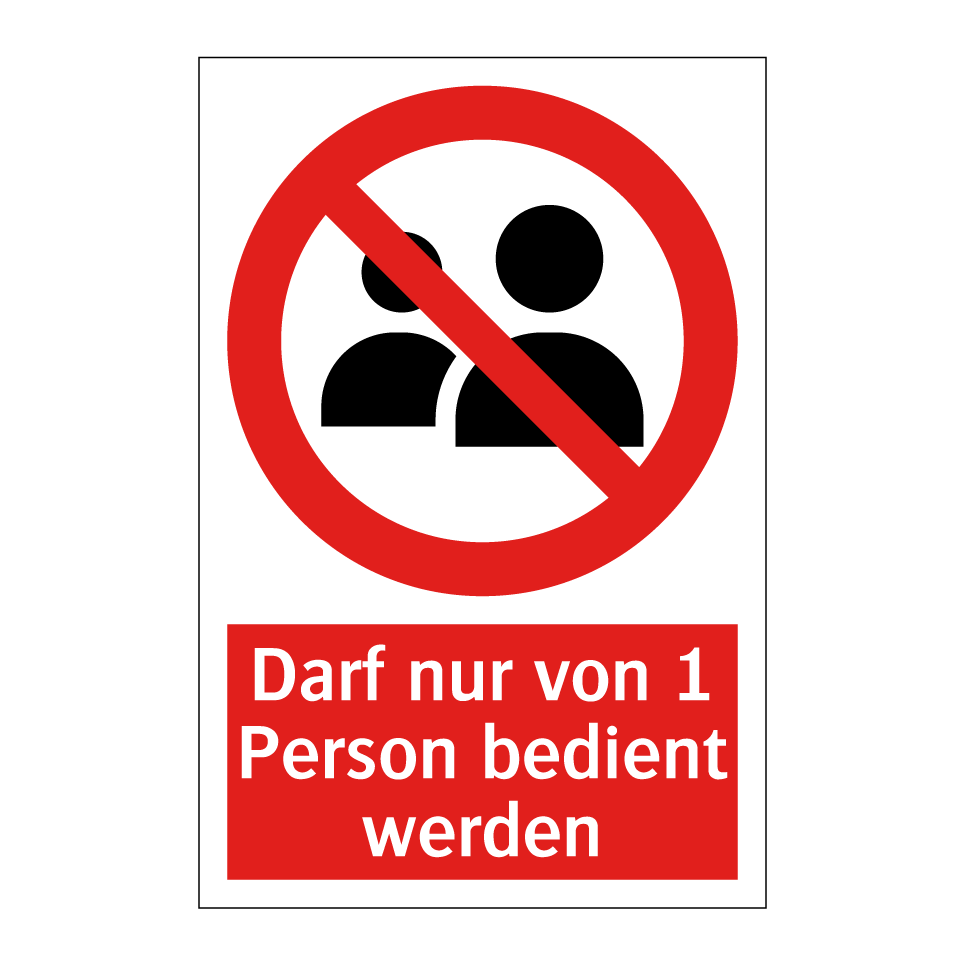 Verbotsschild mit dem Text Darf nur von 1 Person bedient werden