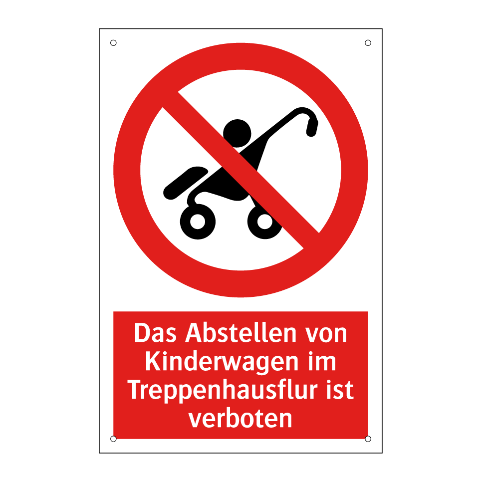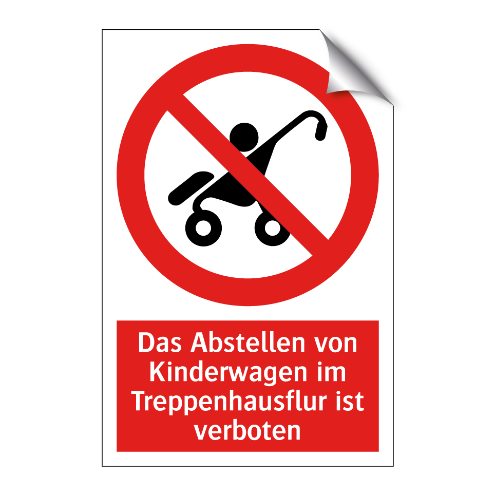 Verbotsschild mit dem Text Das Abstellen von Kinderwagen im Treppenhausflur ist verboten