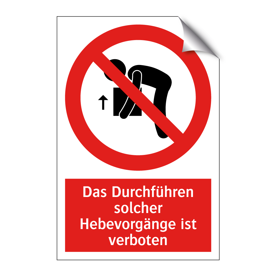 Verbotsschild mit dem Text Das Durchführen solcher Hebevorgänge ist verboten