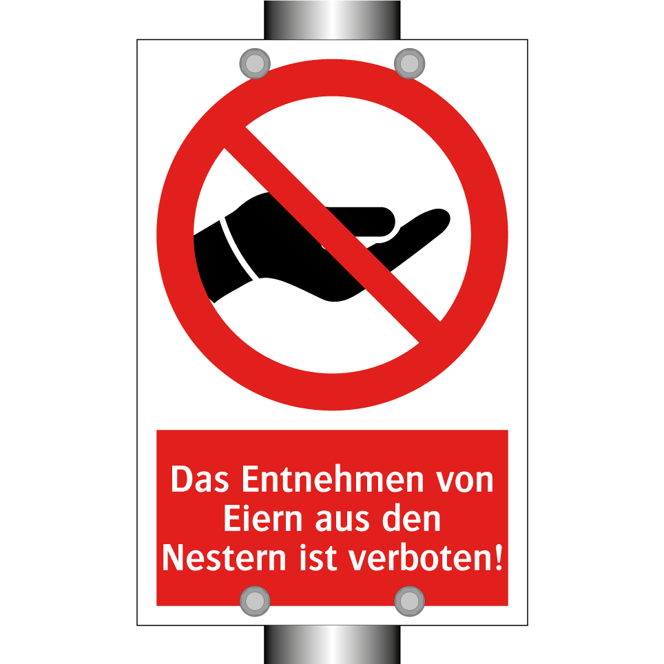 Verbotsschild mit dem Text Das Entnehmen von Eiern aus den Nestern ist verboten!