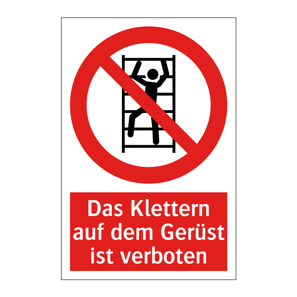 Verbotsschild mit dem Text Das Klettern auf dem Gerüst ist verboten