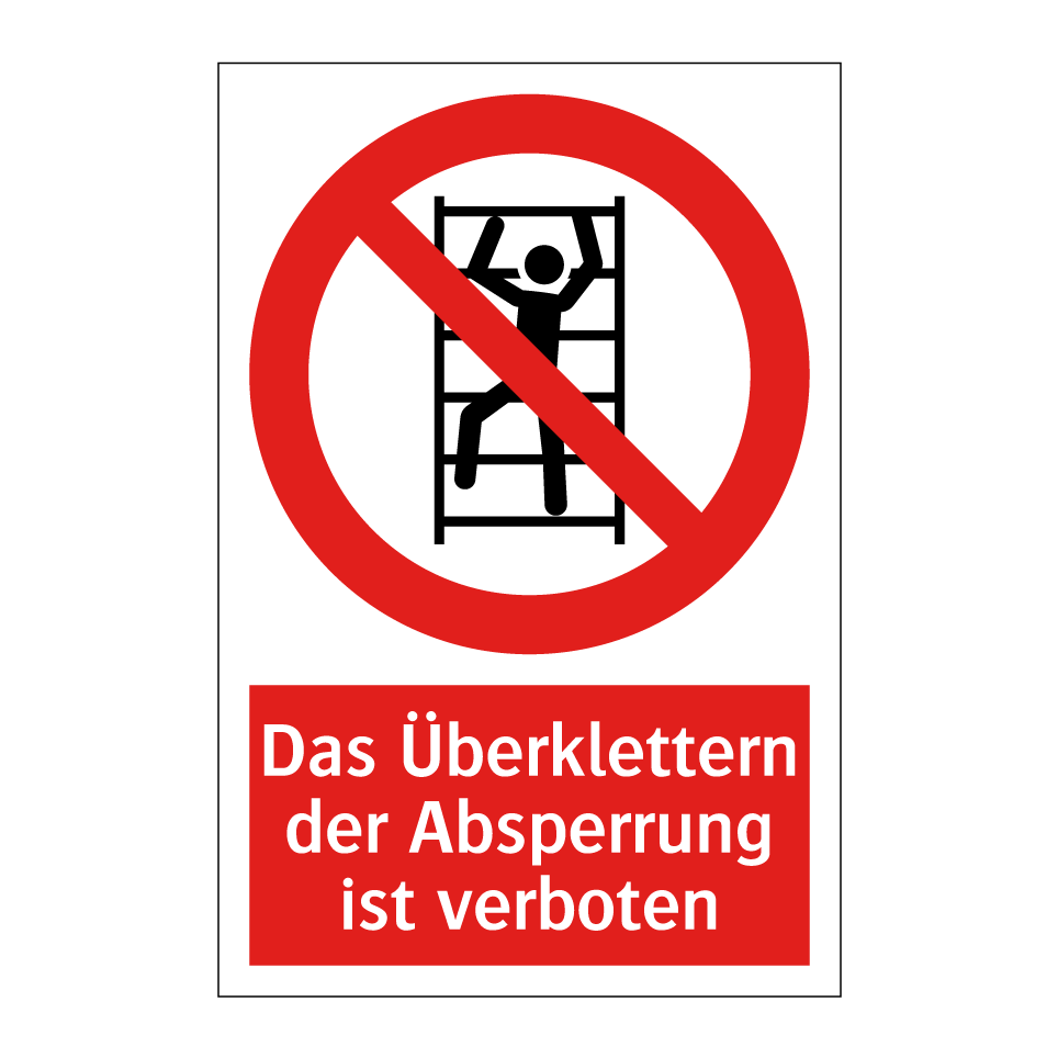 Verbotsschild mit dem Text Das Überklettern der Absperrung ist verboten