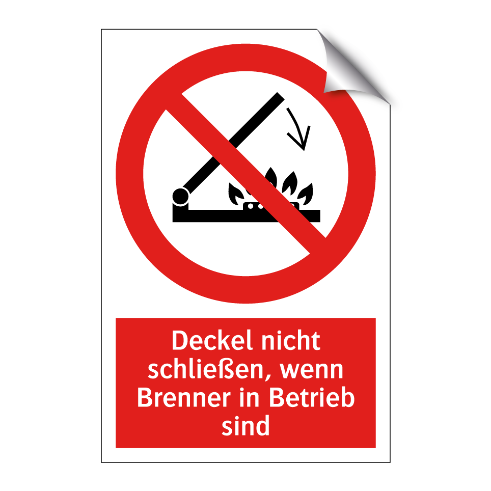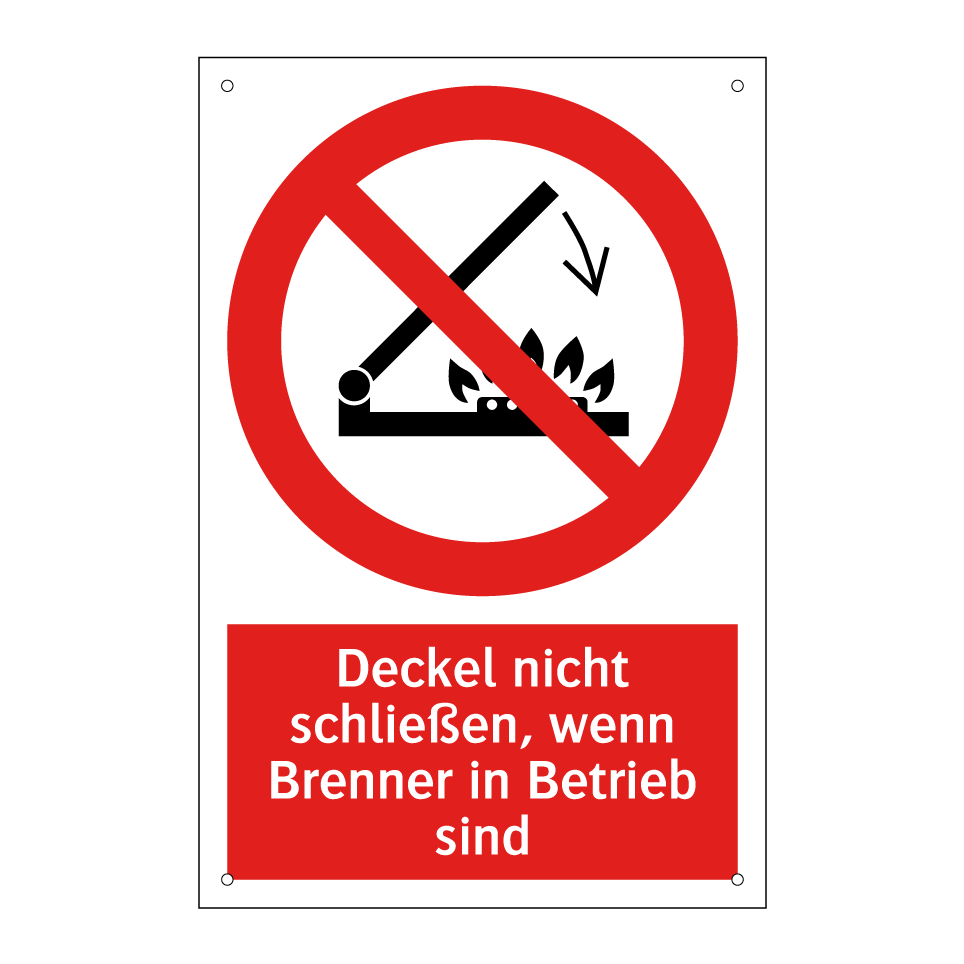 Verbotsschild mit dem Text Deckel nicht schließen, wenn Brenner in Betrieb sind