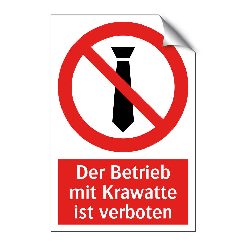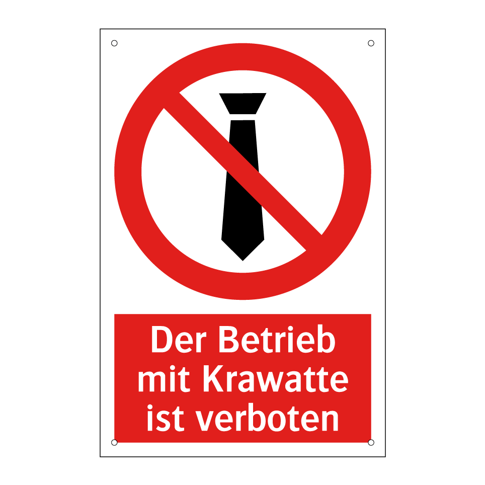 Verbotsschild mit dem Text Der Betrieb mit Krawatte ist verboten