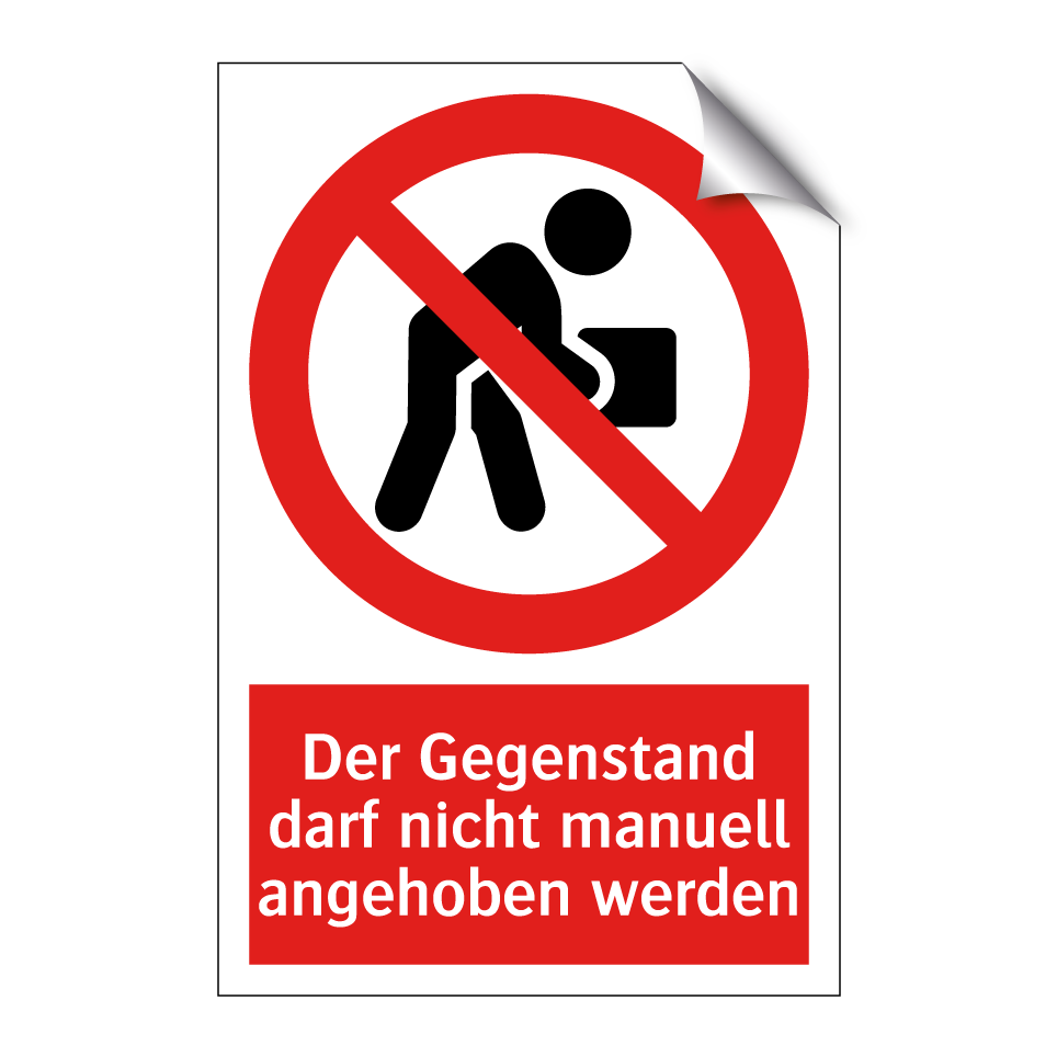 Diese auffällige Verbotsschild mit rotem Hintergrund und weißer Schrift ist ideal, um sicherzustellen, dass bestimmte Gegenstände nicht manuell angehoben werden. Sie eignet sich hervorragend für Lagerhäuser, Fabriken und andere industrielle Umgebungen, in denen schwere oder empfindliche Objekte vorhanden sind. Durch die klare Symbolik und den prägnanten Text wird die Botschaft unmissverständlich vermittelt, was zur Vermeidung von Unfällen und zur Förderung der Arbeitssicherheit beiträgt. Platzieren Sie diese Verbotsschilder an gut sichtbaren Stellen, um sicherzustellen, dass alle Mitarbeiter und Besucher die Anweisungen leicht erkennen und befolgen können.