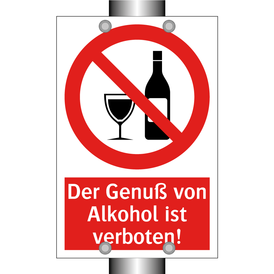 Verbotsschild mit dem Text Der Genuß von Alkohol ist verboten!