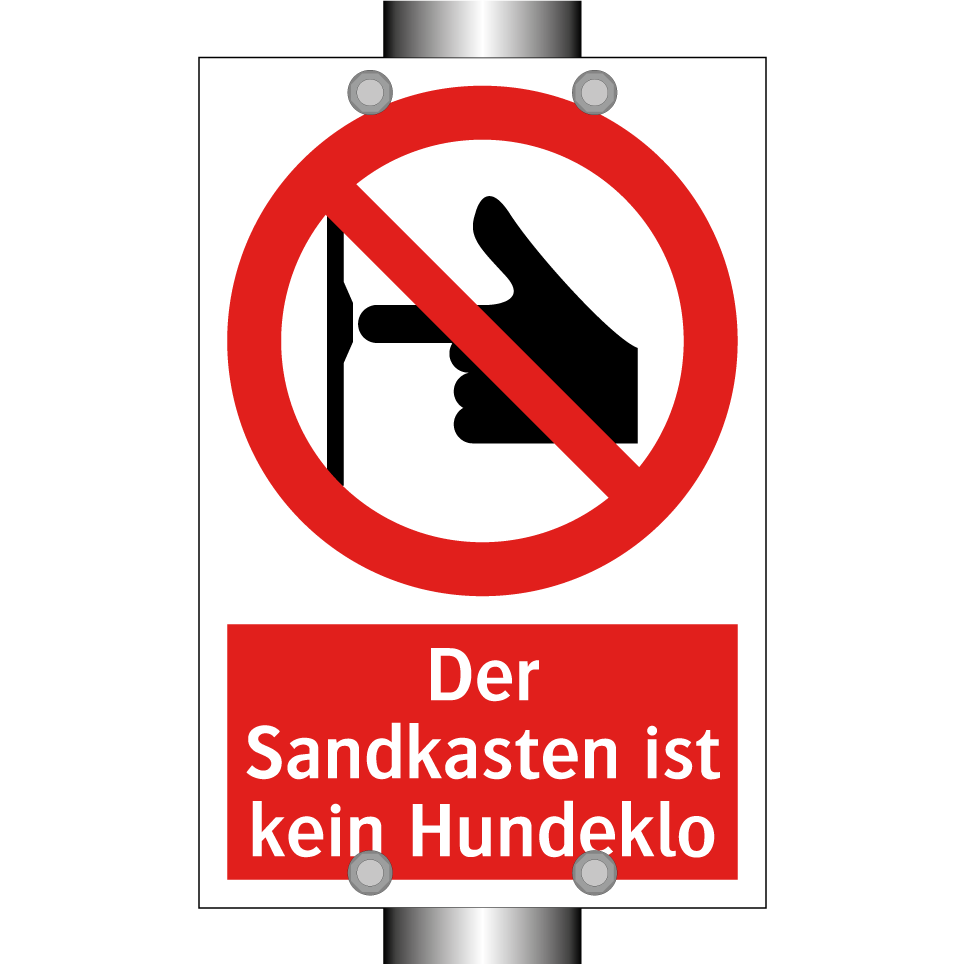 Verbotsschild mit dem Text Der Sandkasten ist kein Hundeklo