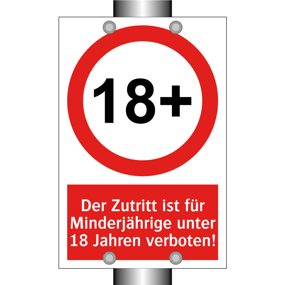 Verbotsschild mit dem Text Der Zutritt ist für Minderjährige unter 18 Jahren verboten!