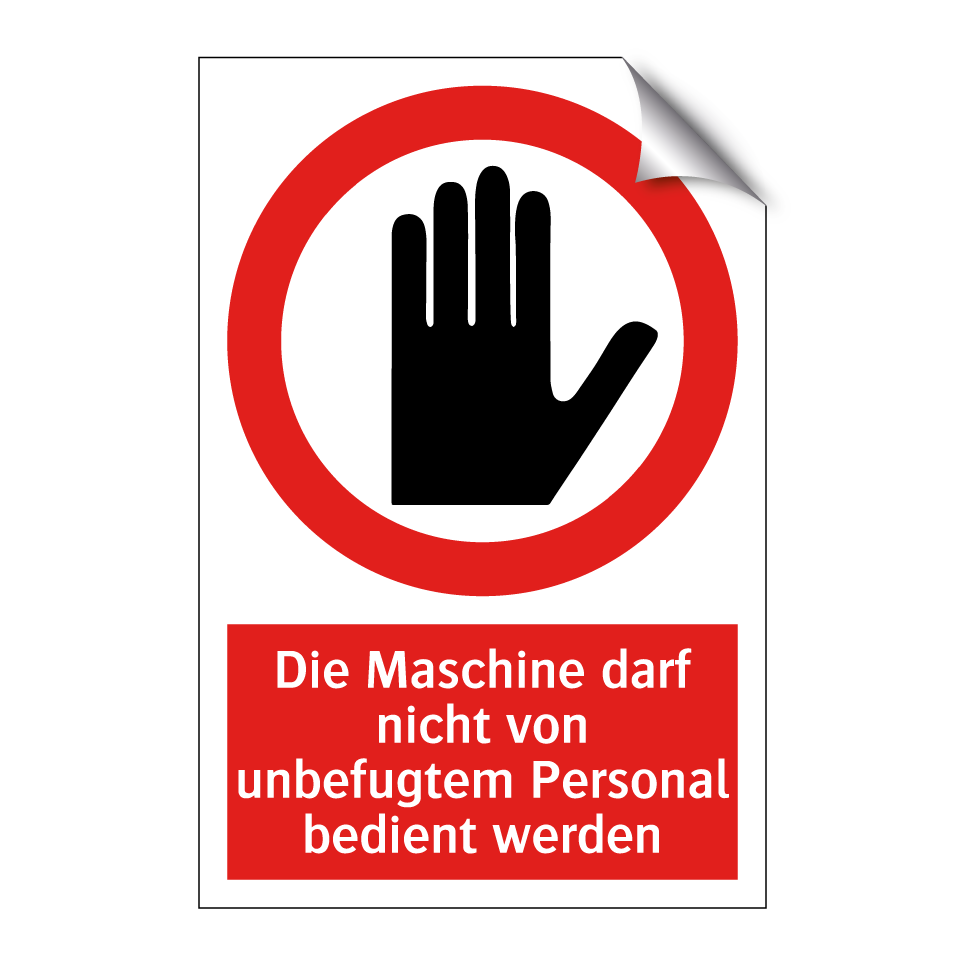 Verbotsschild mit dem Text Die Maschine darf nicht von unbefugtem Personal bedient werden