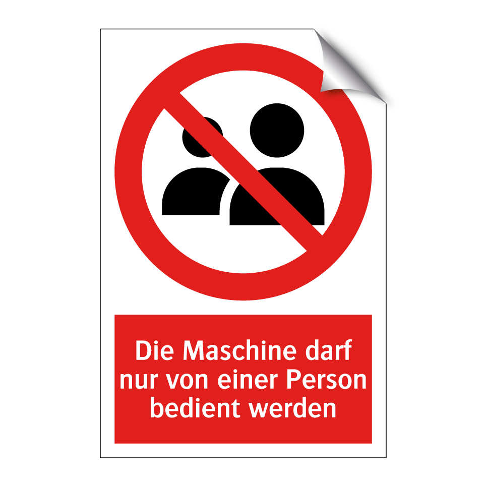 Verbotsschild mit dem Text Die Maschine darf nur von einer Person bedient werden