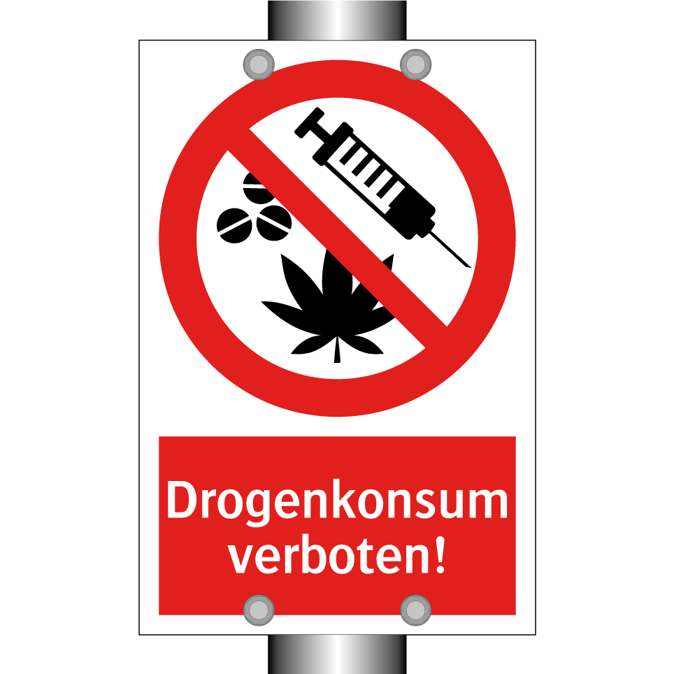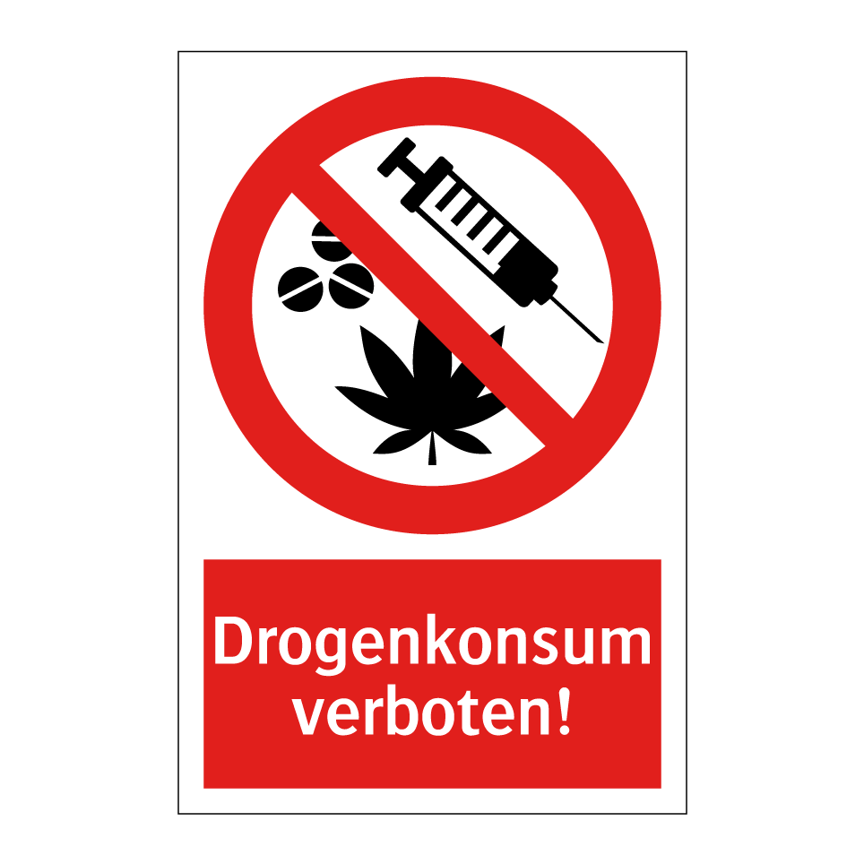 Verbotsschild mit dem Text Drogenkonsum verboten!