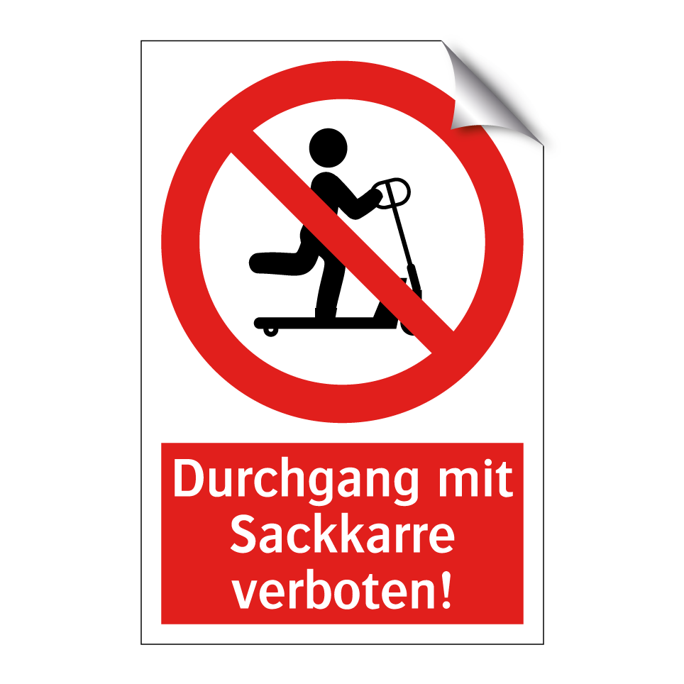 Verbotsschild mit dem Text Durchgang mit Sackkarre verboten!