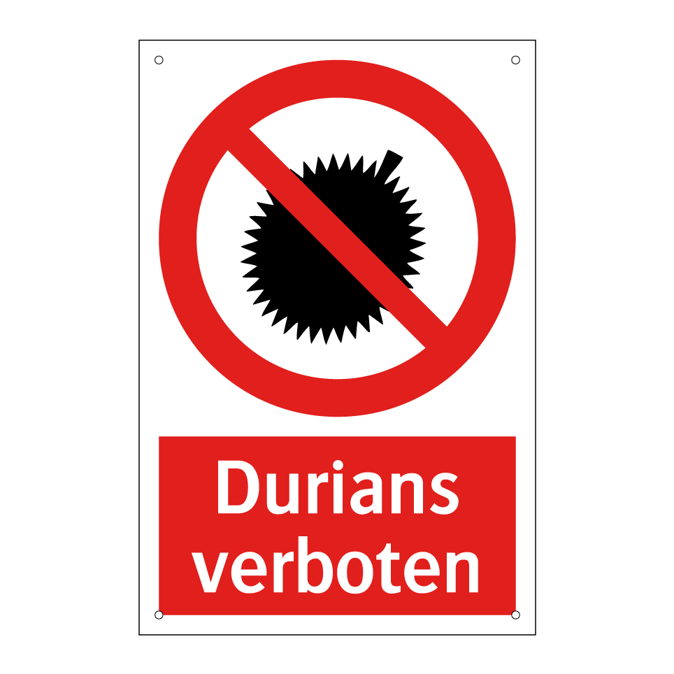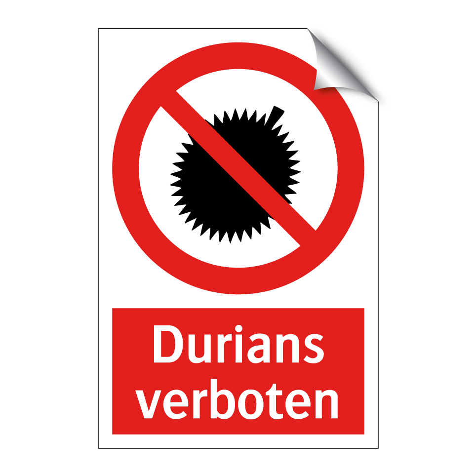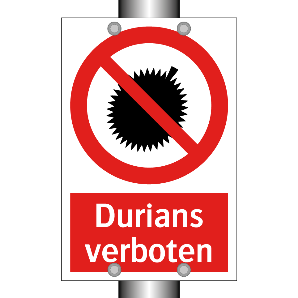 Verbotsschild mit dem Text Durians verboten