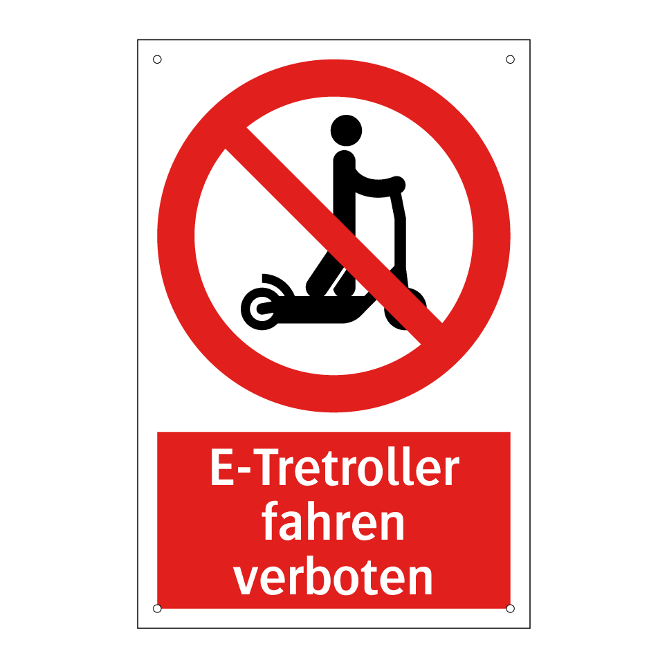Verbotsschild mit dem Text E-Tretroller fahren verboten