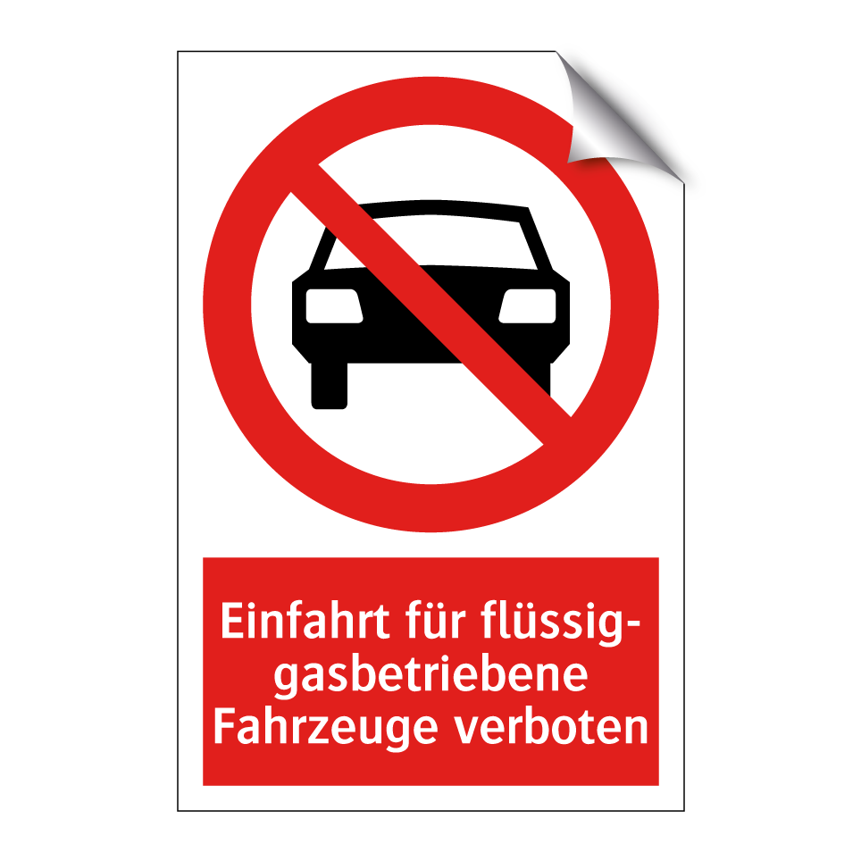 Verbotsschild mit dem Text Einfahrt für flüssig- gasbetriebene Fahrzeuge verboten