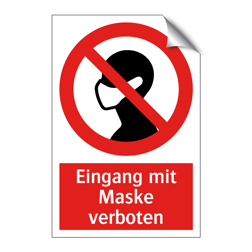Verbotsschild mit dem Text Eingang mit Maske verboten