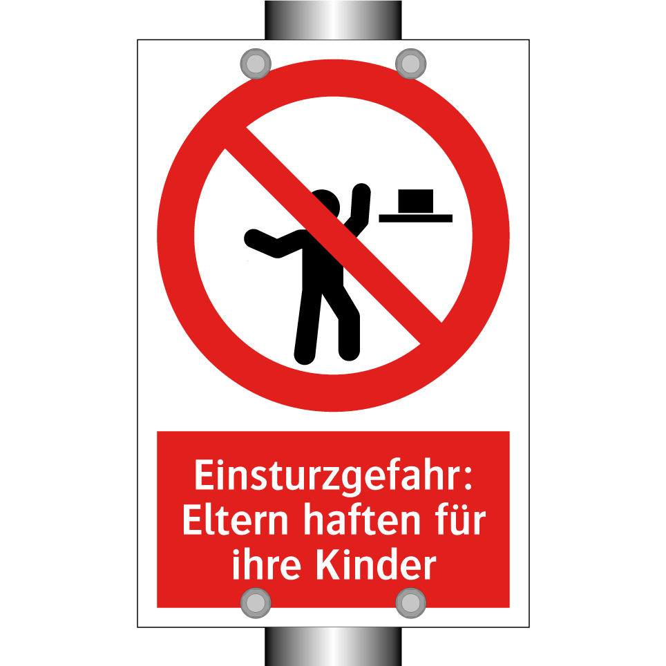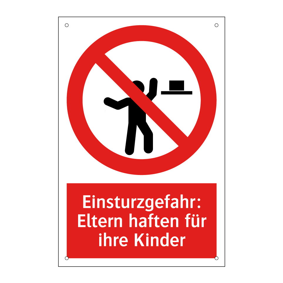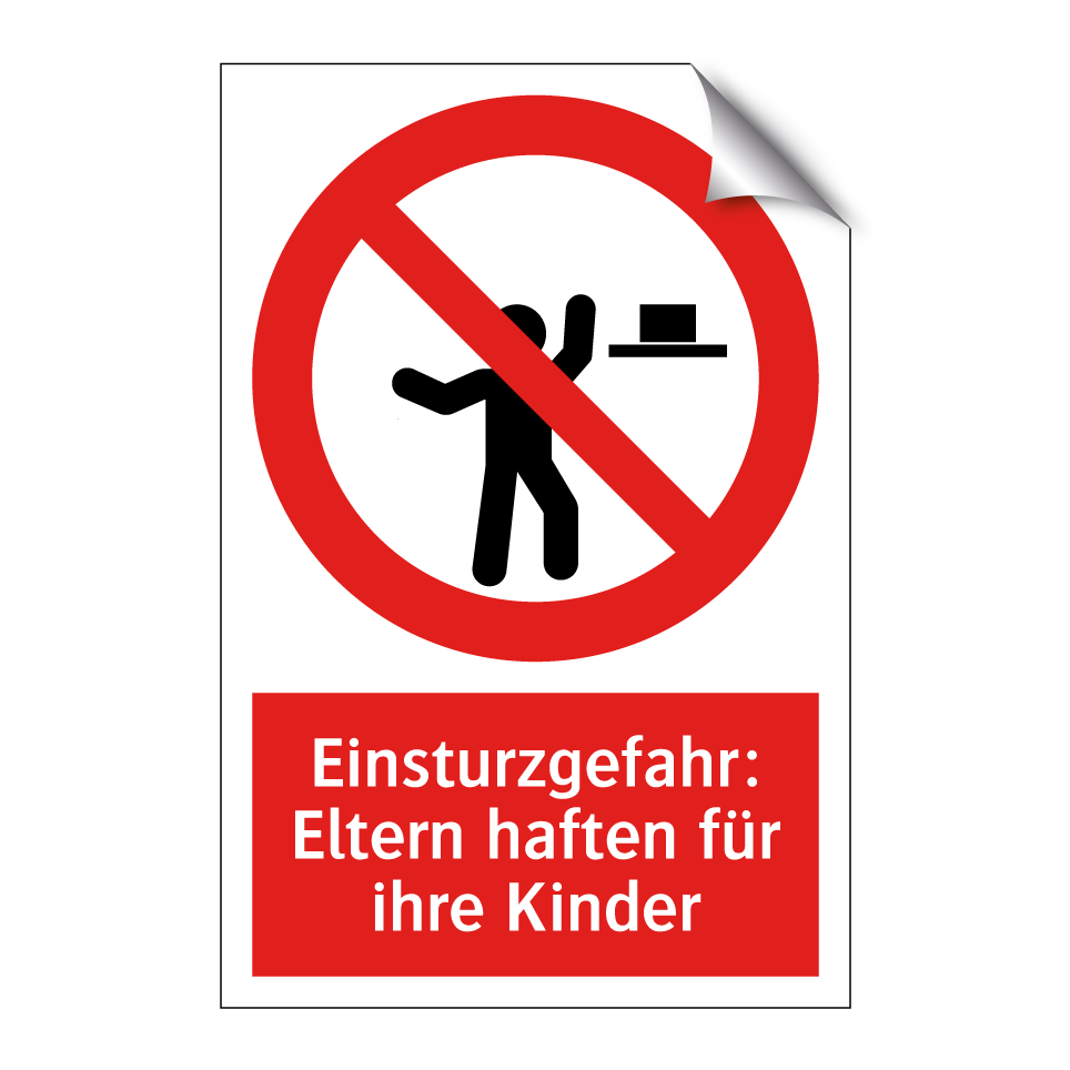Verbotsschild mit dem Text Einsturzgefahr: Eltern haften für ihre Kinder