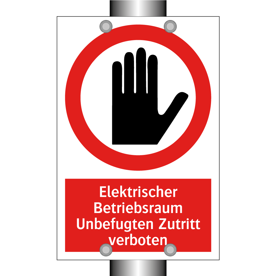 Verbotsschild mit dem Text Elektrischer Betriebsraum Unbefugten Zutritt verboten