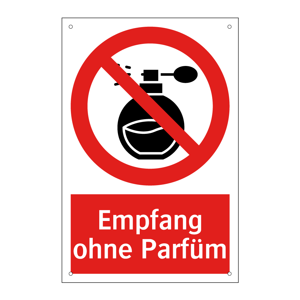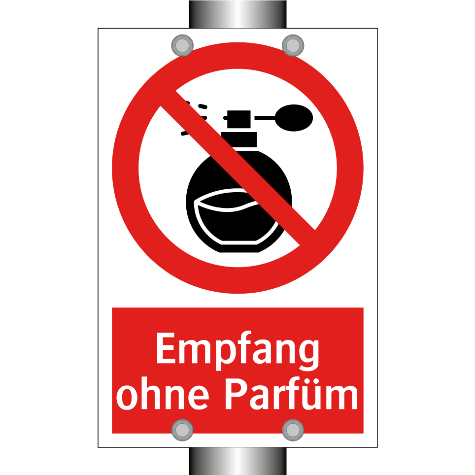 Verbotsschild mit dem Text Empfang ohne Parfüm