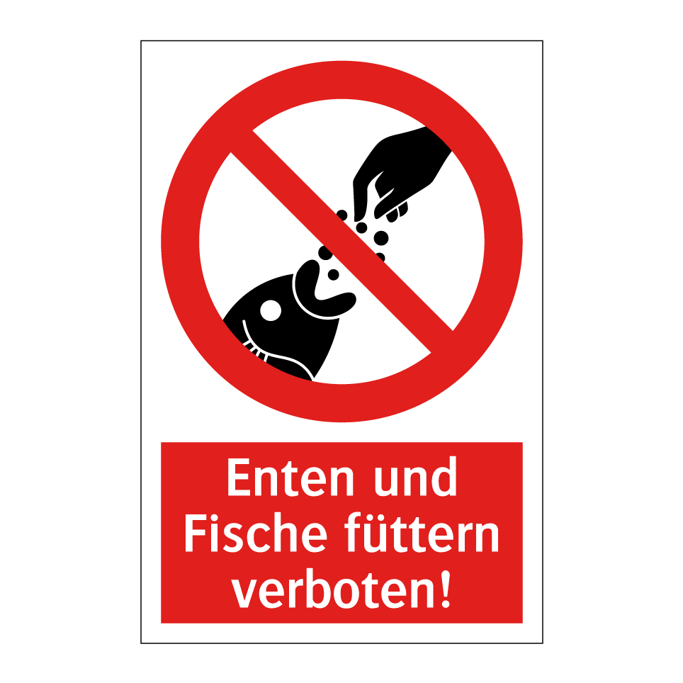 Verbotsschild mit dem Text Enten und Fische füttern verboten!