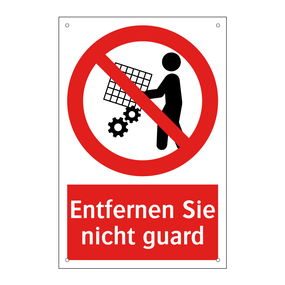 Diese Verbotsschild ist ideal für den Einsatz in Bereichen, in denen Sicherheit oberste Priorität hat. Sie dient dazu, Personen darauf hinzuweisen, dass bestimmte Schutzvorrichtungen nicht entfernt werden dürfen. Diese Warnung ist besonders wichtig in industriellen Umgebungen, Werkstätten oder Produktionsstätten, wo Maschinen und Anlagen betrieben werden. Die auffällige rote Hintergrundfarbe und die klare Symbolik sorgen dafür, dass die Botschaft unmissverständlich ist. Platzieren Sie diese Verbotsschild an gut sichtbaren Stellen, um sicherzustellen, dass alle Mitarbeiter und Besucher die Sicherheitsvorschriften einhalten. Sie ist ein unverzichtbares Element für jeden, der die Sicherheit am Arbeitsplatz gewährleisten möchte.