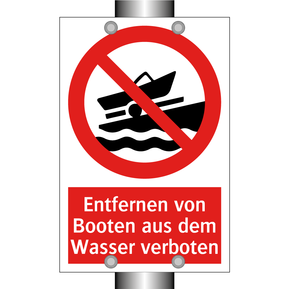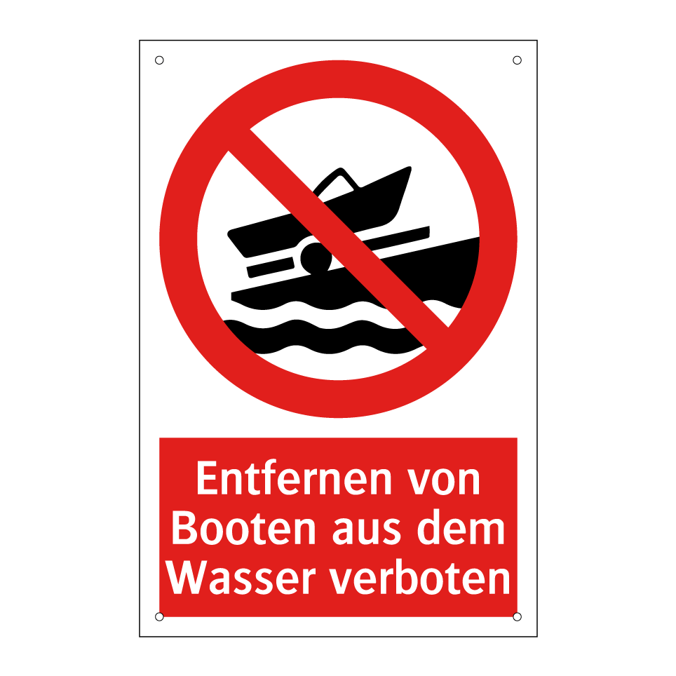 Verbotsschild mit dem Text Entfernen von Booten aus dem Wasser verboten