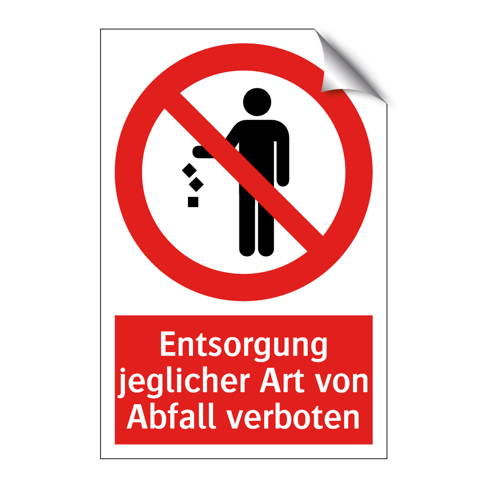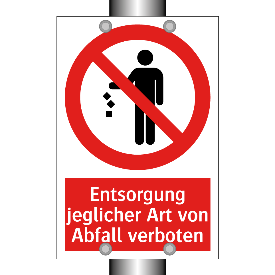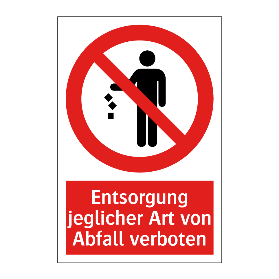 Verbotsschild mit dem Text Entsorgung jeglicher Art von Abfall verboten