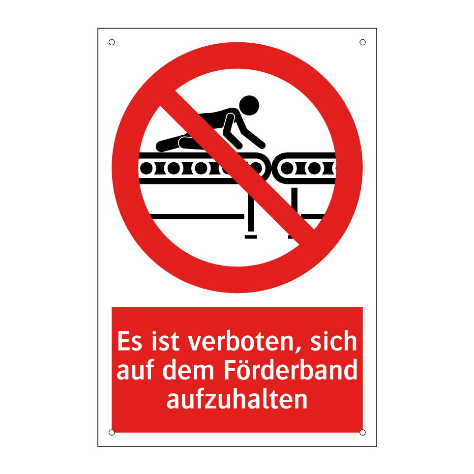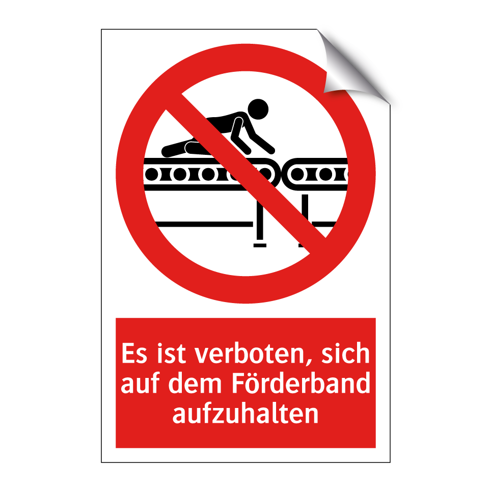 Verbotsschild mit dem Text Es ist verboten, sich auf dem Förderband aufzuhalten