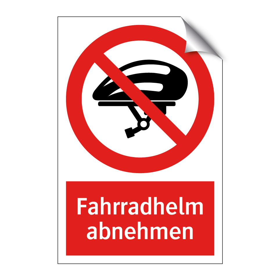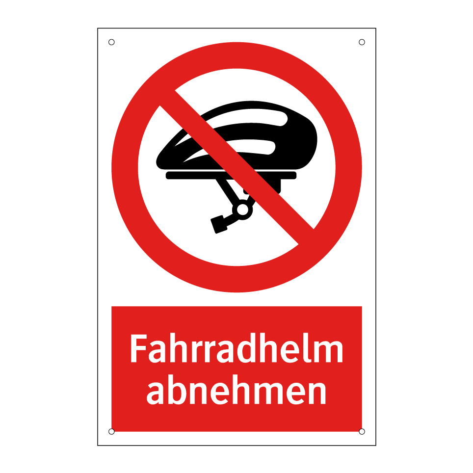 Verbotsschild mit dem Text Fahrradhelm abnehmen