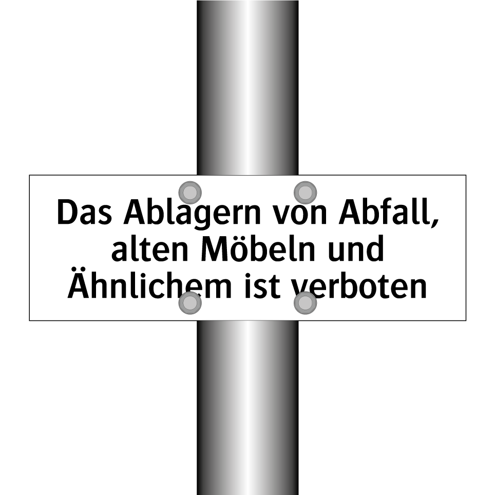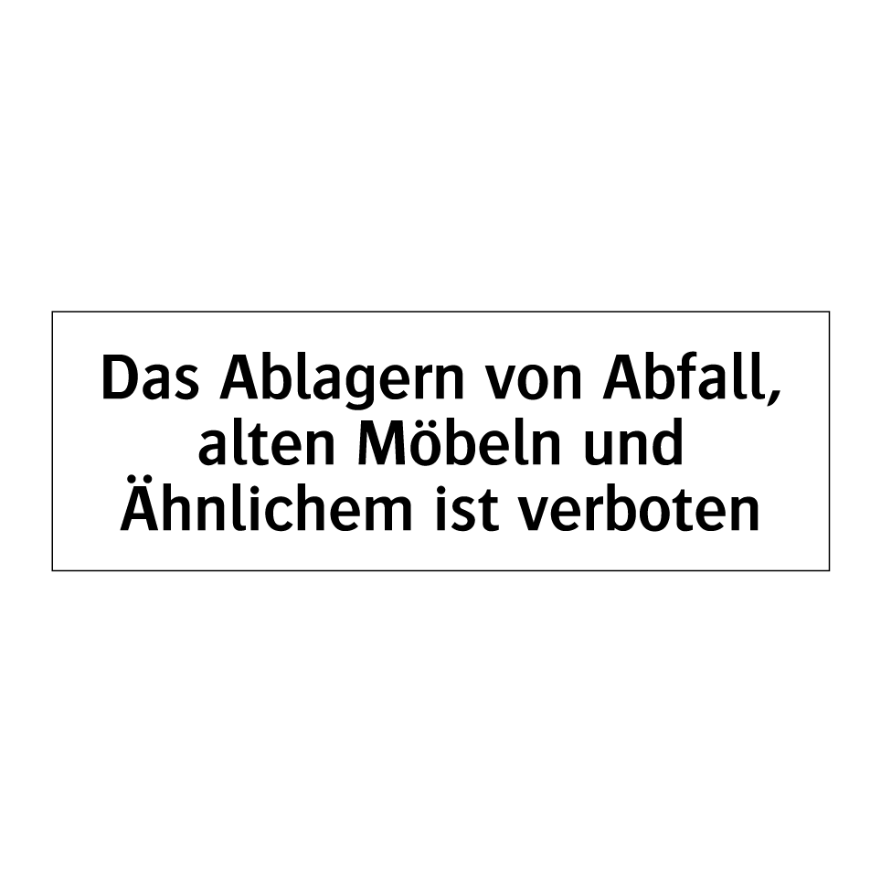 Verbotsschild mit dem Text Das Ablagern von Abfall, alten Möbeln und Ähnlichem ist verboten