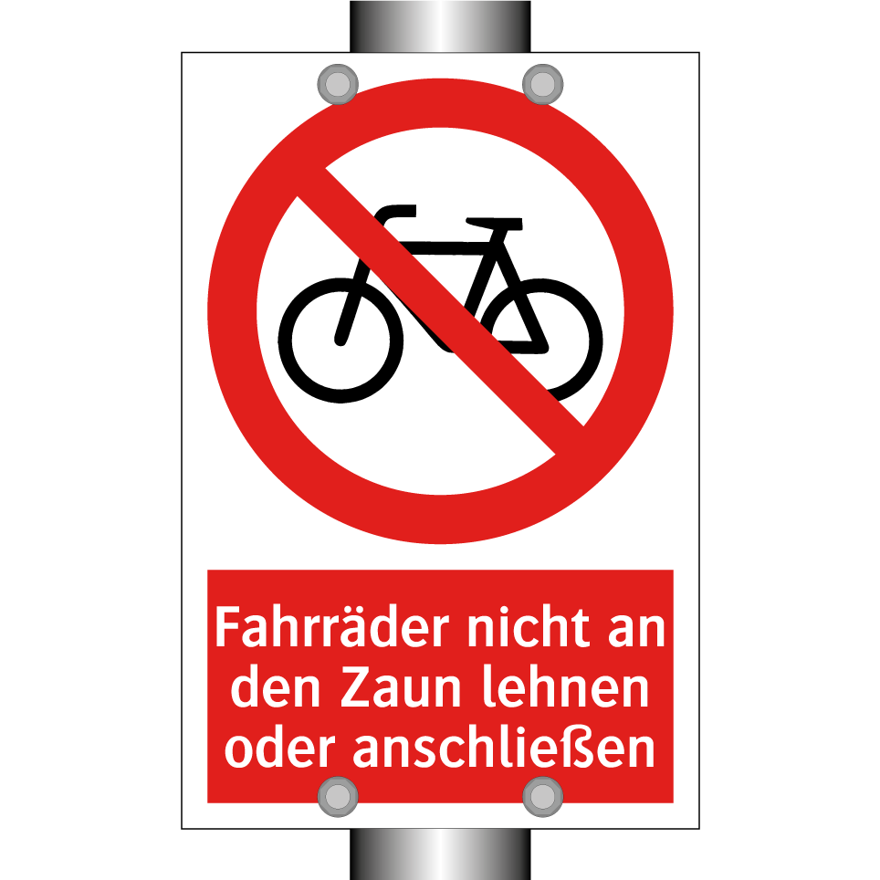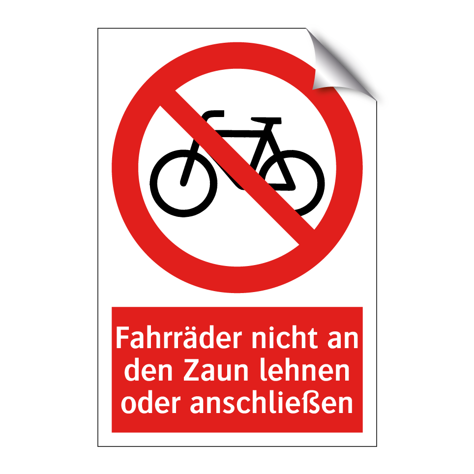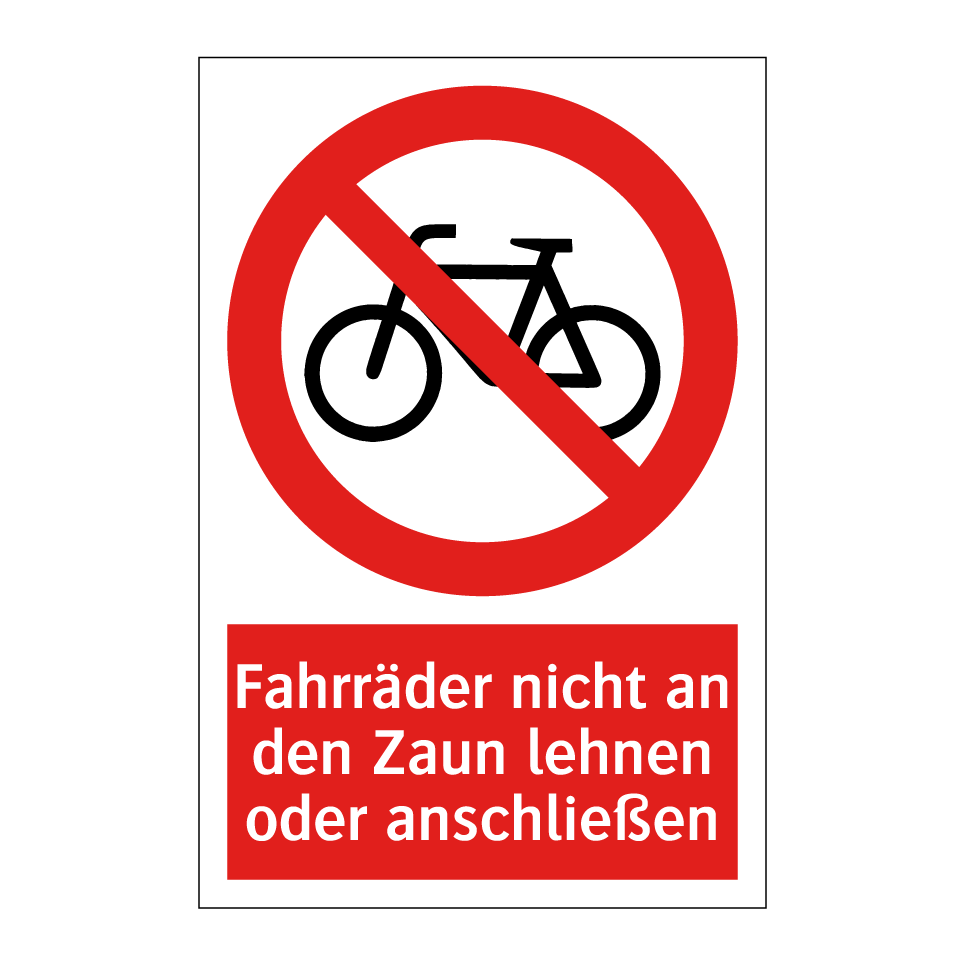 Verbotsschild mit dem Text Fahrräder nicht an den Zaun lehnen oder anschließen