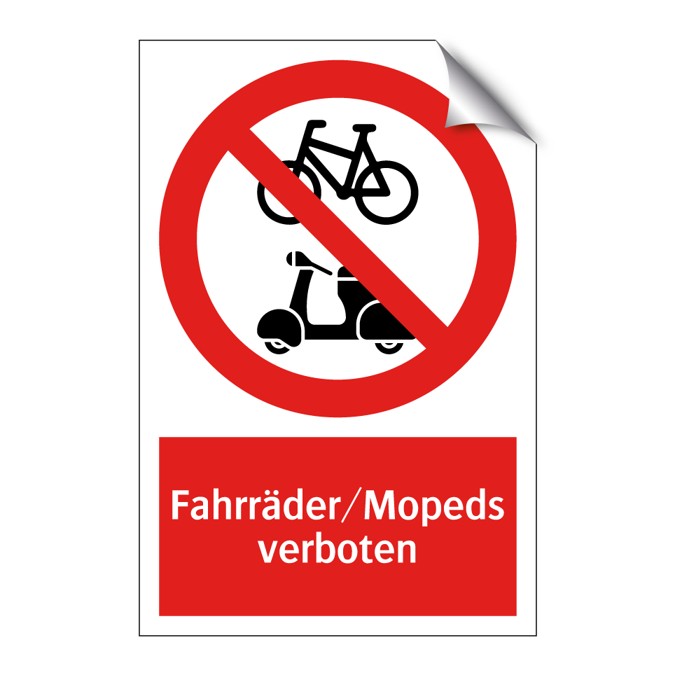 Verbotsschild mit dem Text Fahrräder/Mopeds verboten