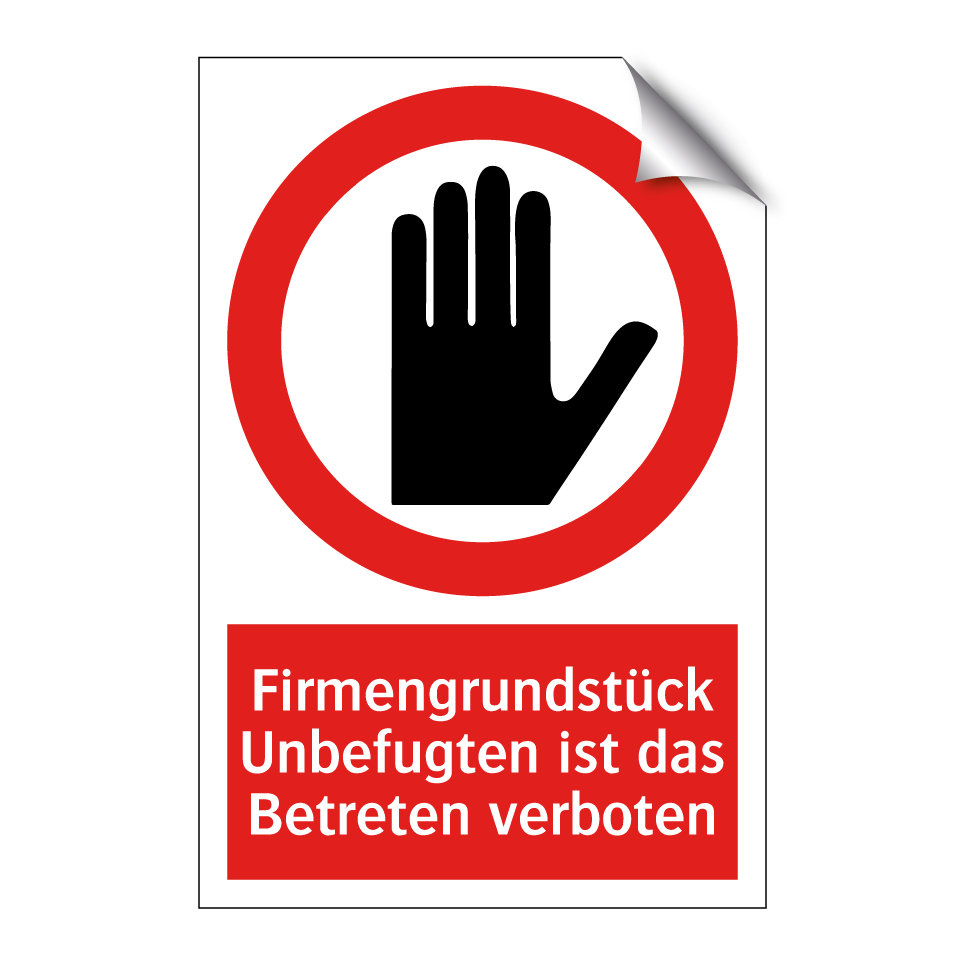 Verbotsschild mit dem Text Firmengrundstück Unbefugten ist das Betreten verboten