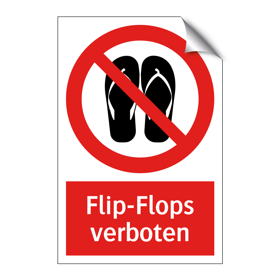 Diese auffällige Verbotsschild mit rotem Hintergrund und weißer Schrift ist ideal, um in Bereichen eingesetzt zu werden, in denen das Tragen von Flip-Flops unerwünscht ist. Ob am Pool, in Fitnessstudios oder in Produktionsstätten – diese Verbotsschilder sorgen dafür, dass die Kleiderordnung eingehalten wird und die Sicherheit gewährleistet bleibt. Die klare Symbolik und der prägnante Text machen es einfach, die Botschaft zu verstehen und zu befolgen. Platzieren Sie das Schild an Eingängen, Umkleideräumen oder anderen strategischen Punkten, um sicherzustellen, dass Ihre Regeln respektiert werden. Ein unverzichtbares Element für jeden Ort, der auf Sicherheit und Ordnung Wert legt.