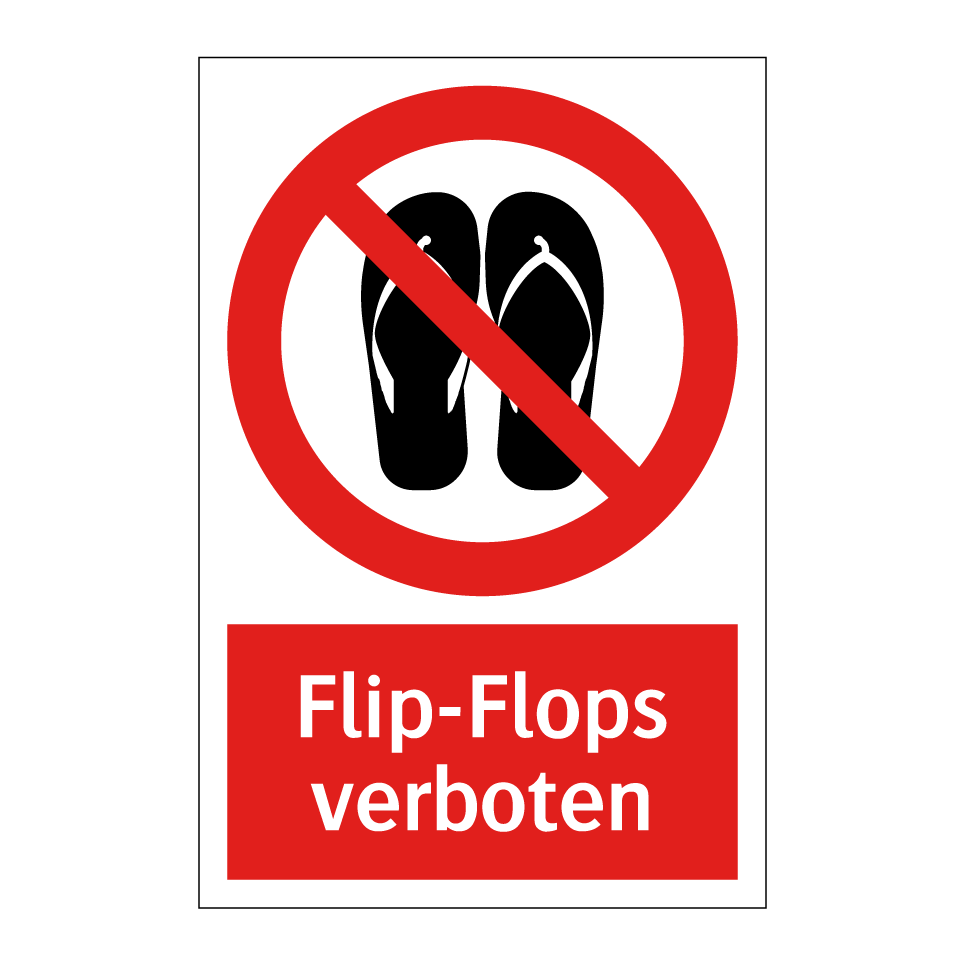 Verbotsschild mit dem Text Flip-Flops verboten