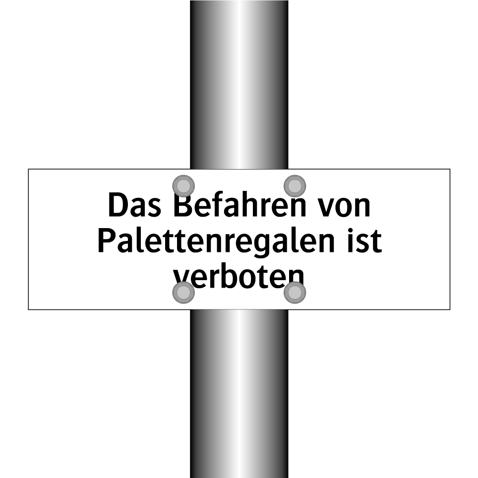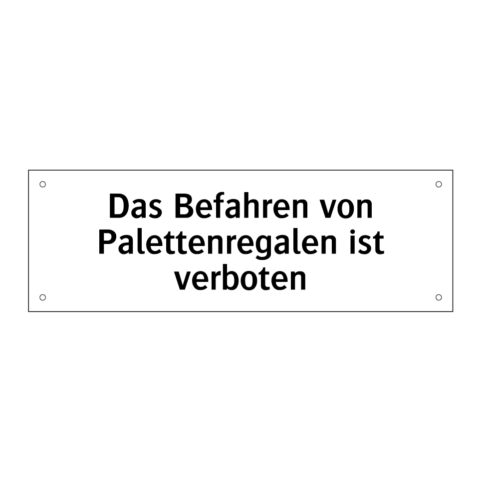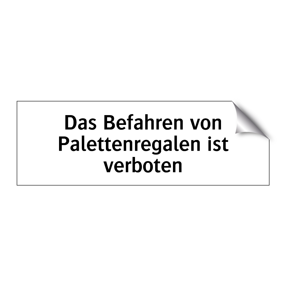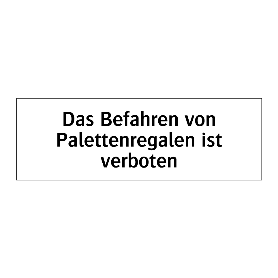 Verbotsschild mit dem Text Das Befahren von Palettenregalen ist verboten
