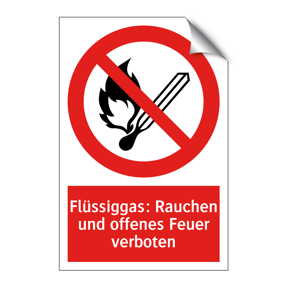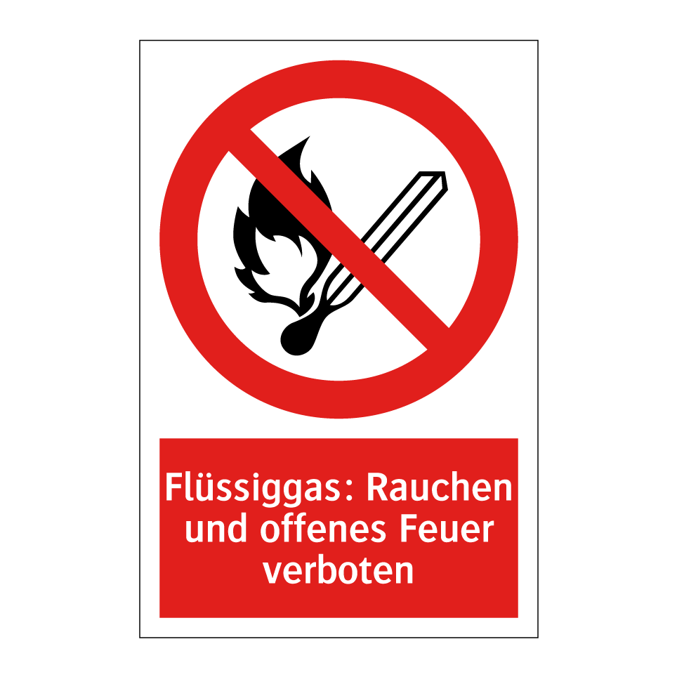 Verbotsschild mit dem Text Flüssiggas: Rauchen und offenes Feuer verboten