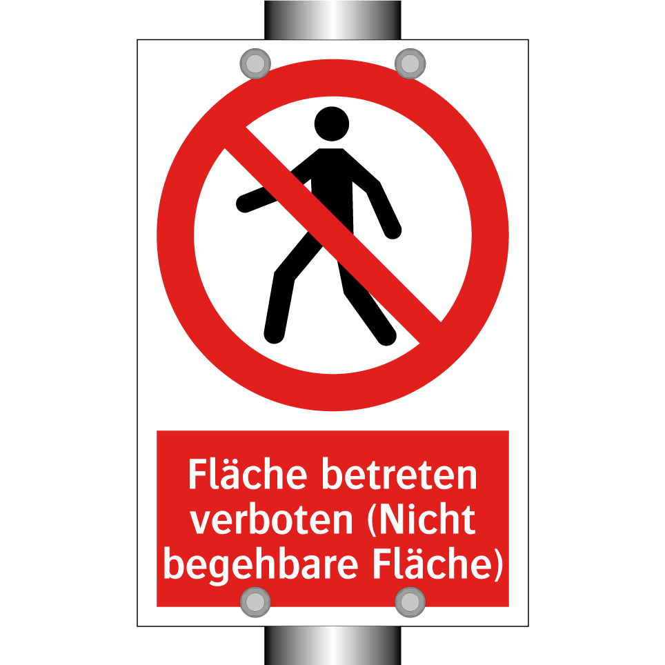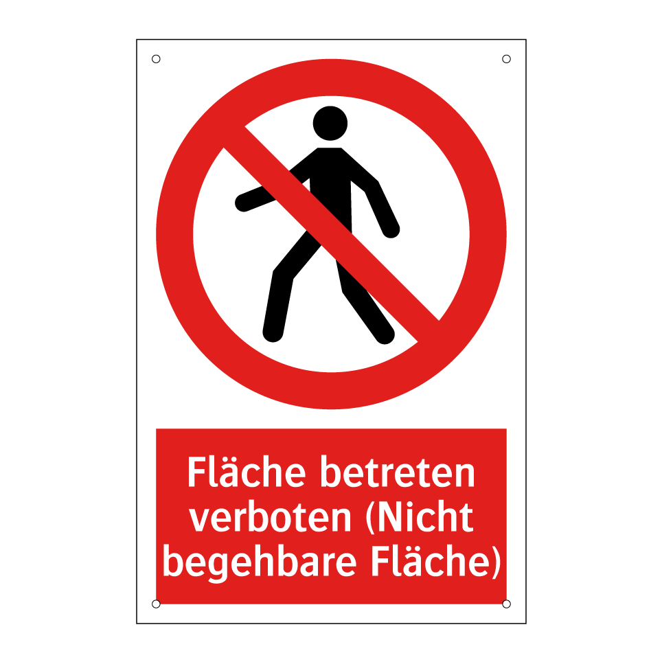 Verbotsschild mit dem Text Fläche betreten verboten (Nicht begehbare Fläche)