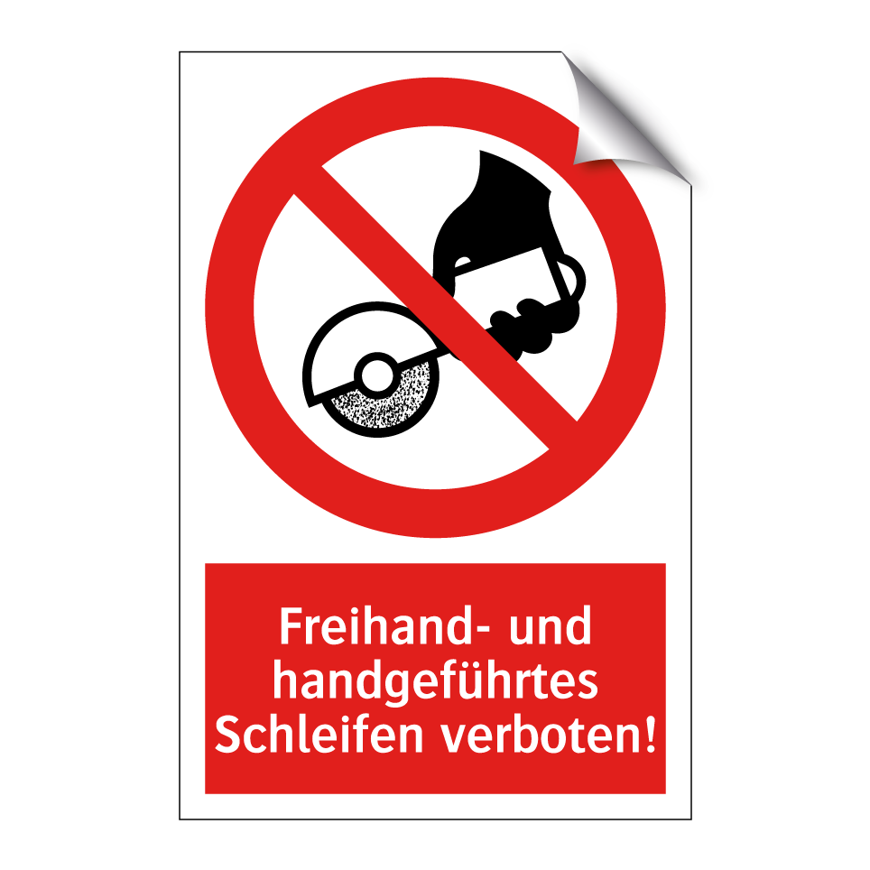 Verbotsschild mit dem Text Freihand- und handgeführtes Schleifen verboten!
