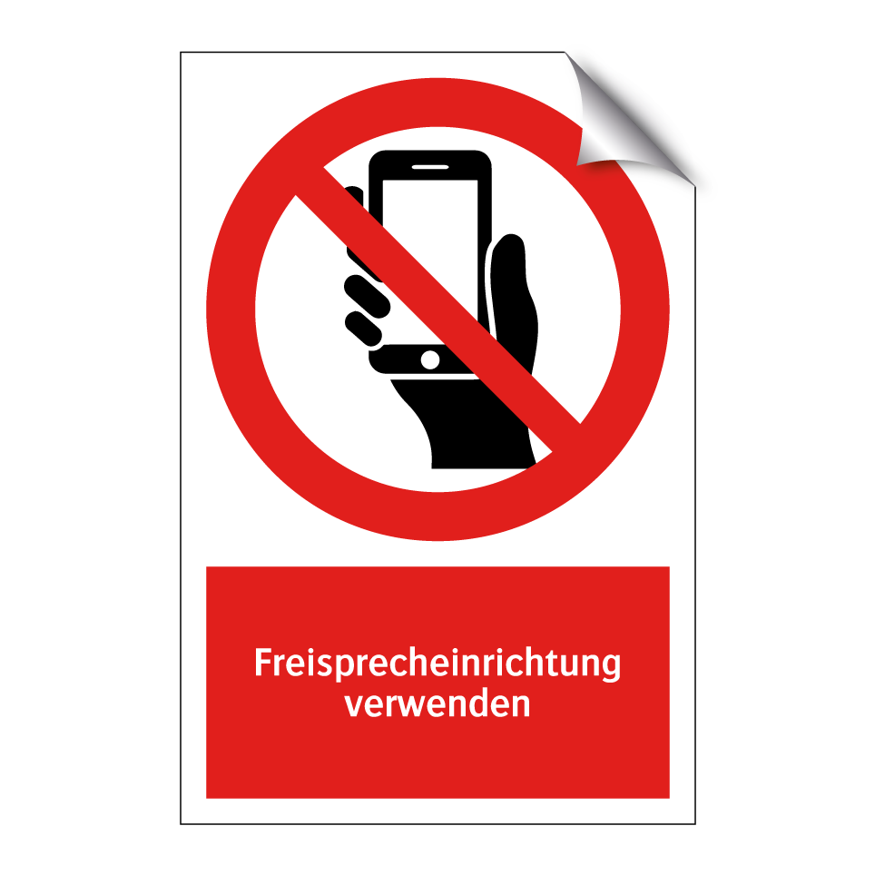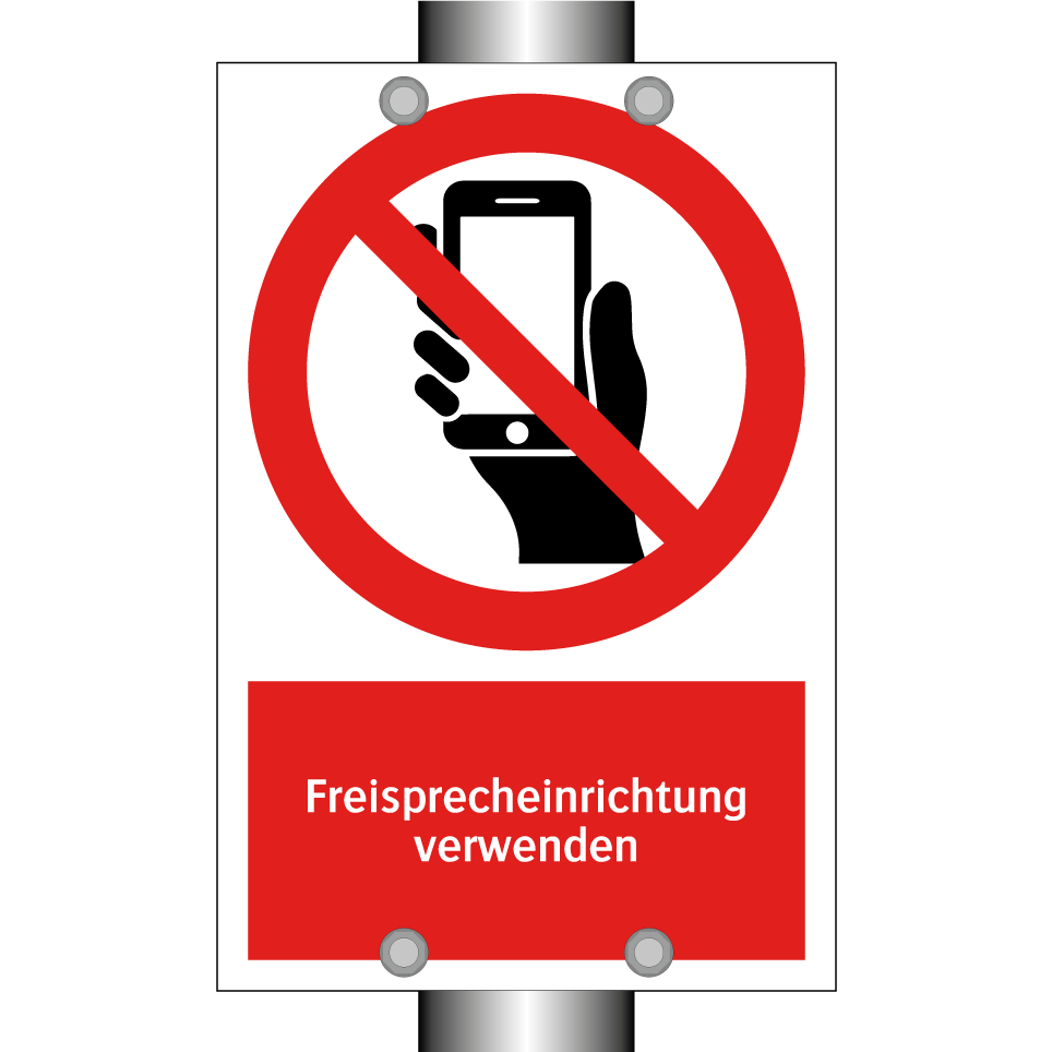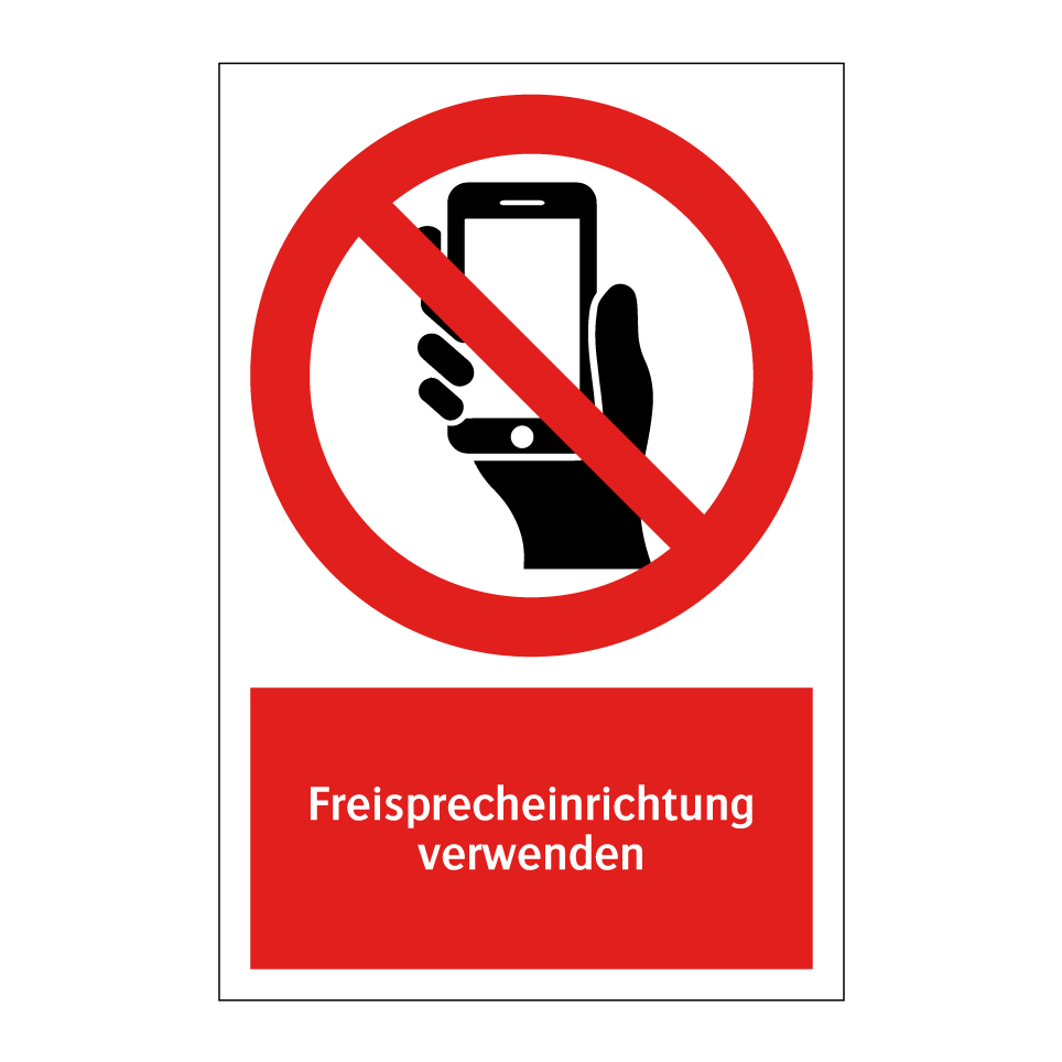Verbotsschild mit dem Text Freisprecheinrichtung verwenden