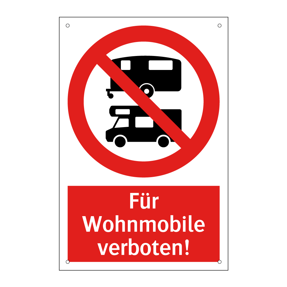 Verbotsschild mit dem Text Für Wohnmobile verboten!