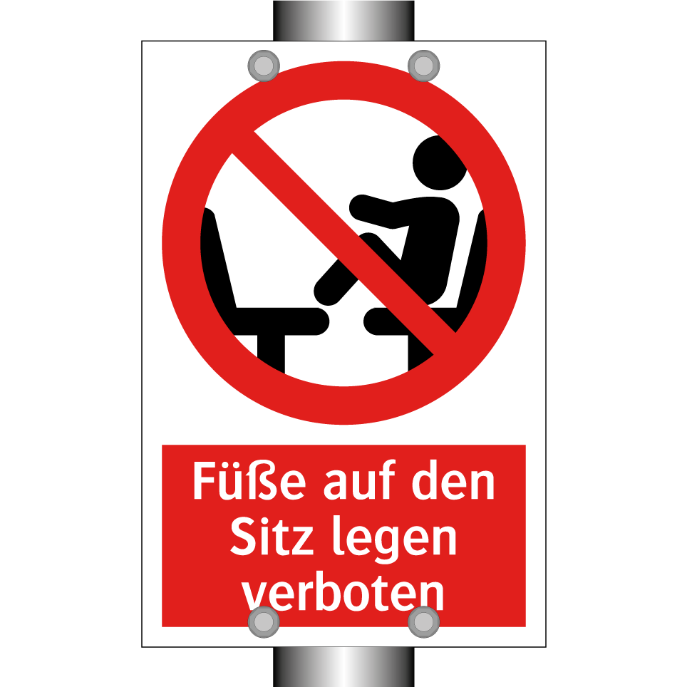 Verbotsschild mit dem Text Füße auf den Sitz legen verboten