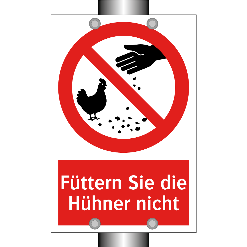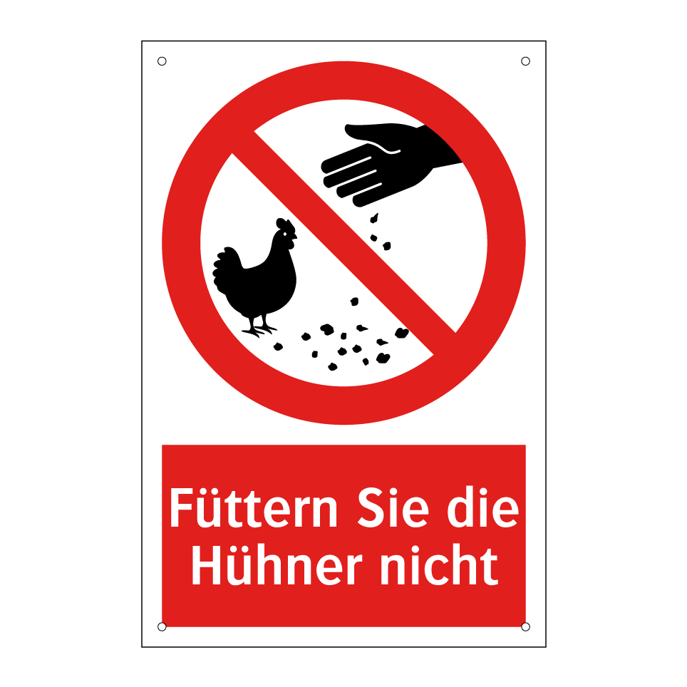 Verbotsschild mit dem Text Füttern Sie die Hühner nicht