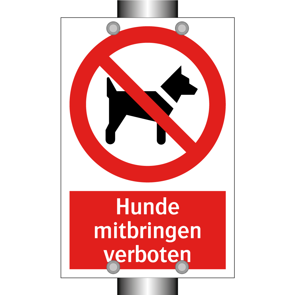 Verbotsschild mit dem Text Hunde mitbringen verboten