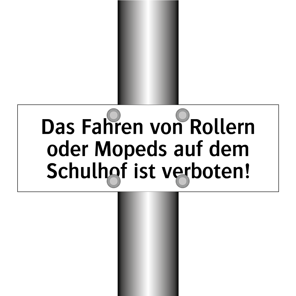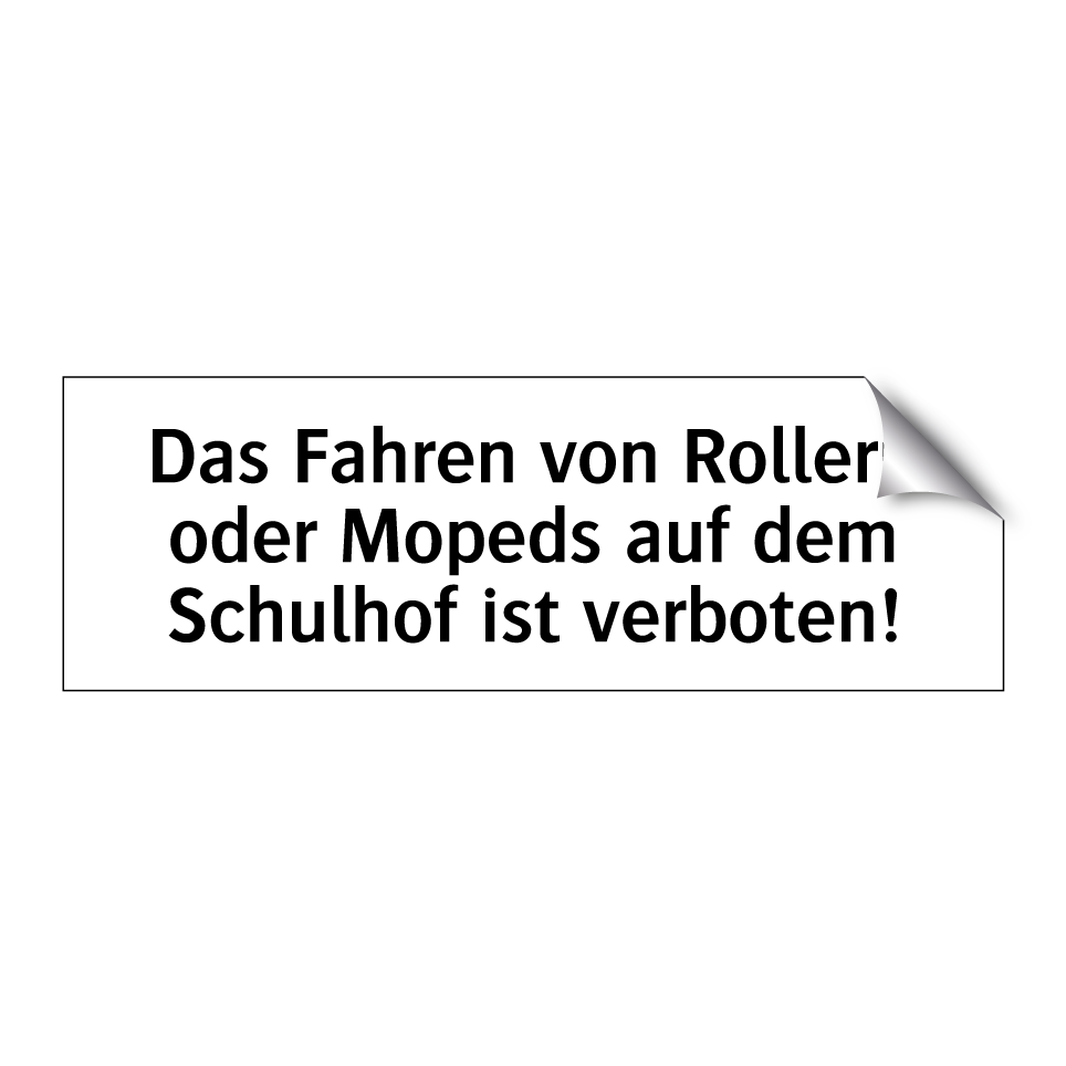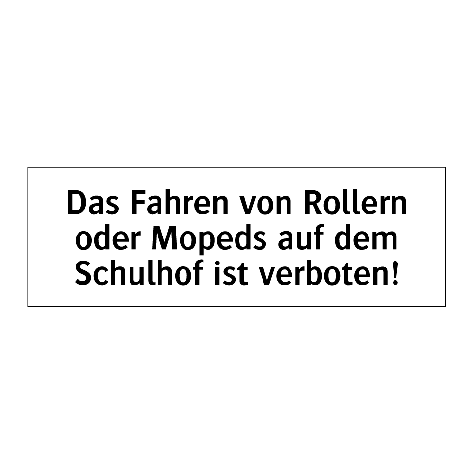 Verbotsschild mit dem Text Das Fahren von Rollern oder Mopeds auf dem Schulhof ist verboten!