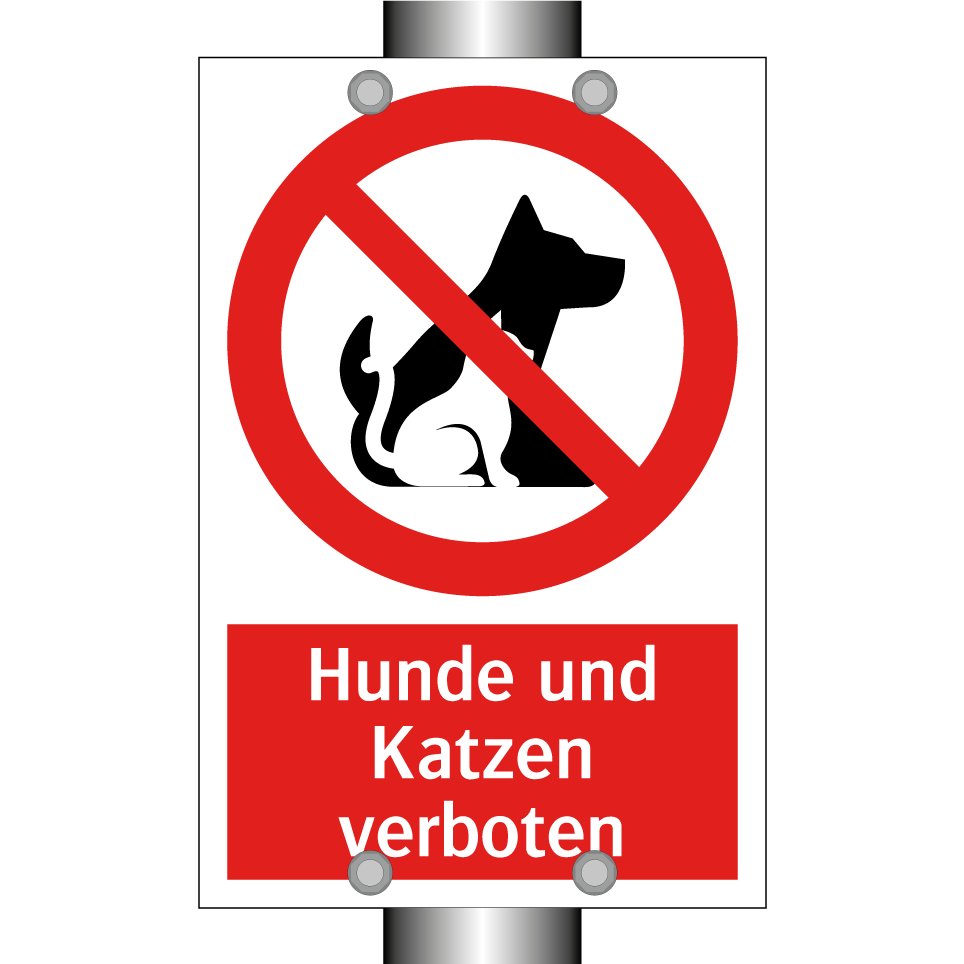 Verbotsschild mit dem Text Hunde und Katzen verboten