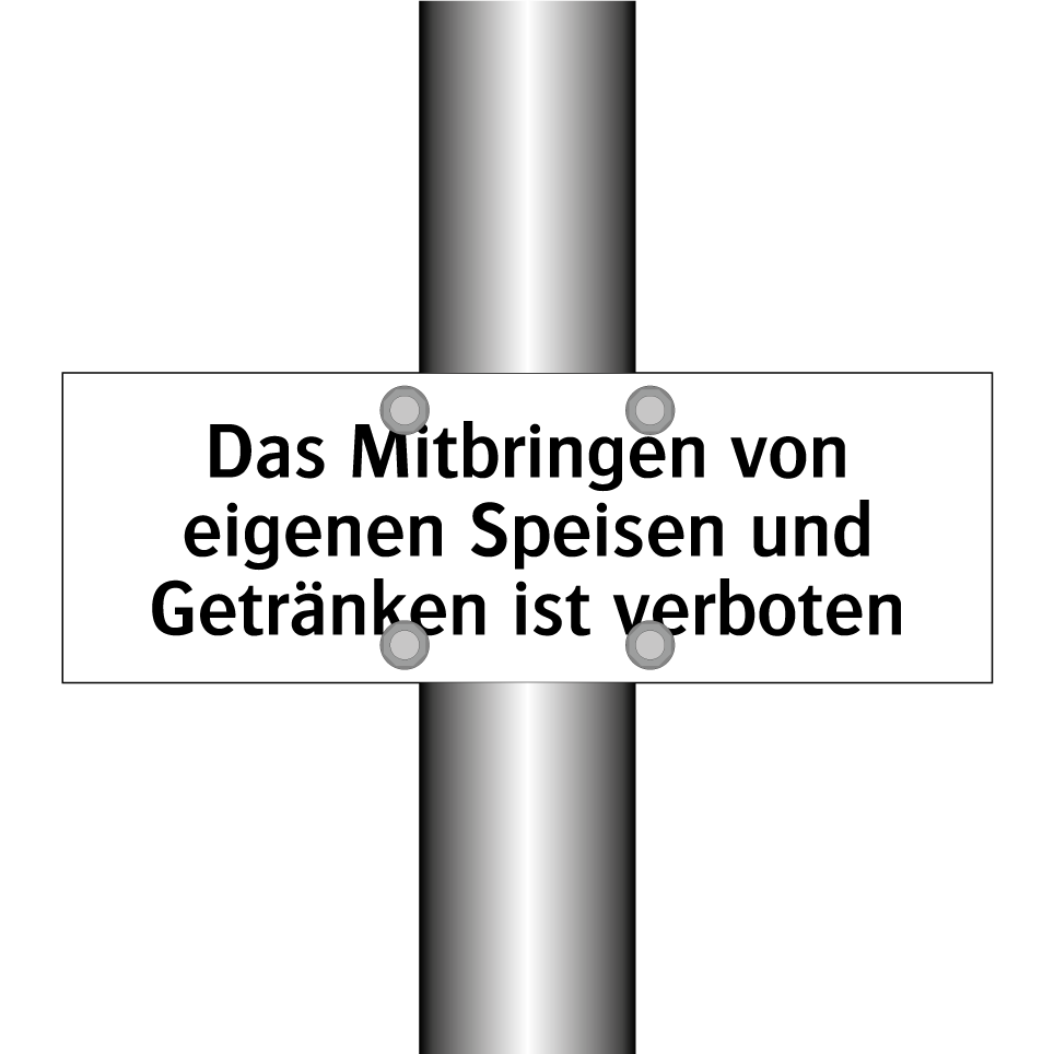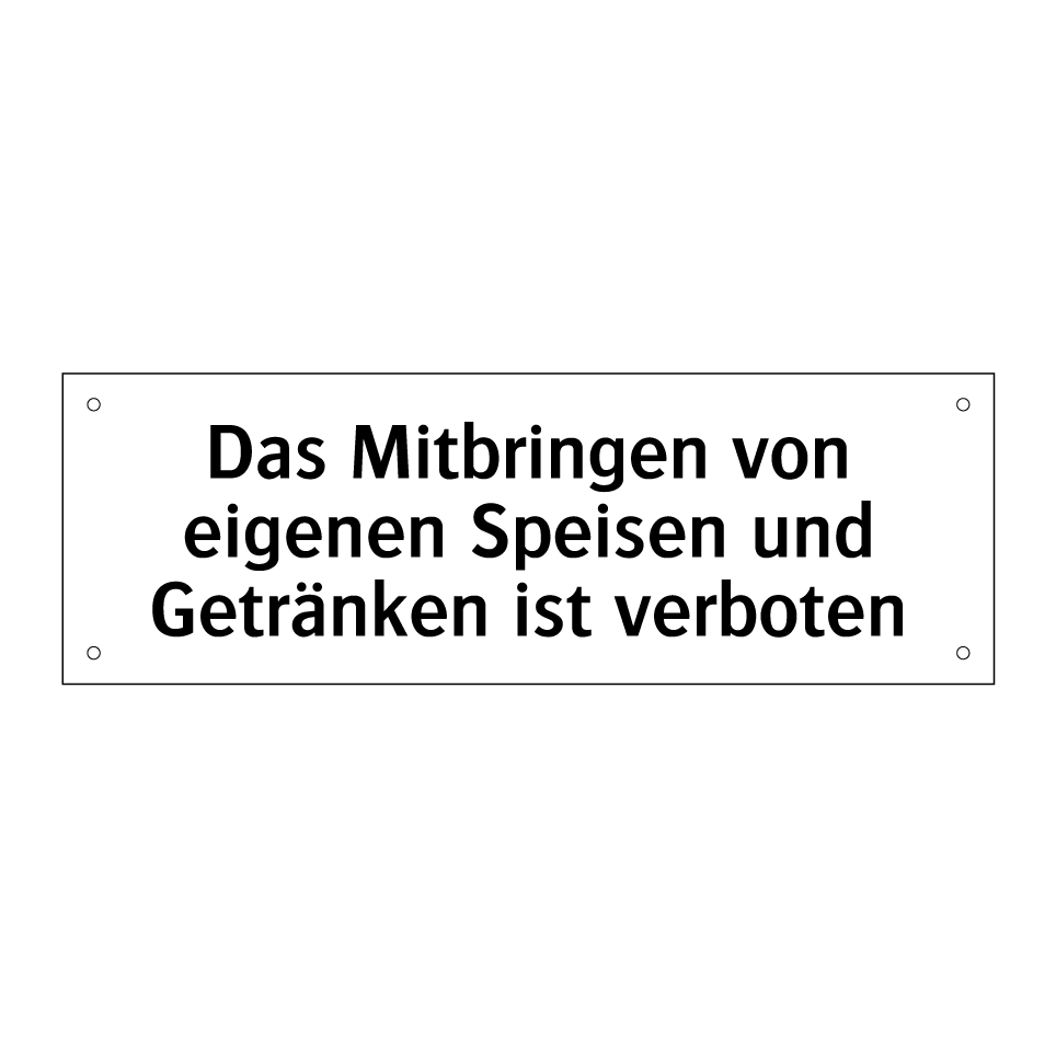 Verbotsschild mit dem Text Das Mitbringen von eigenen Speisen und Getränken ist verboten