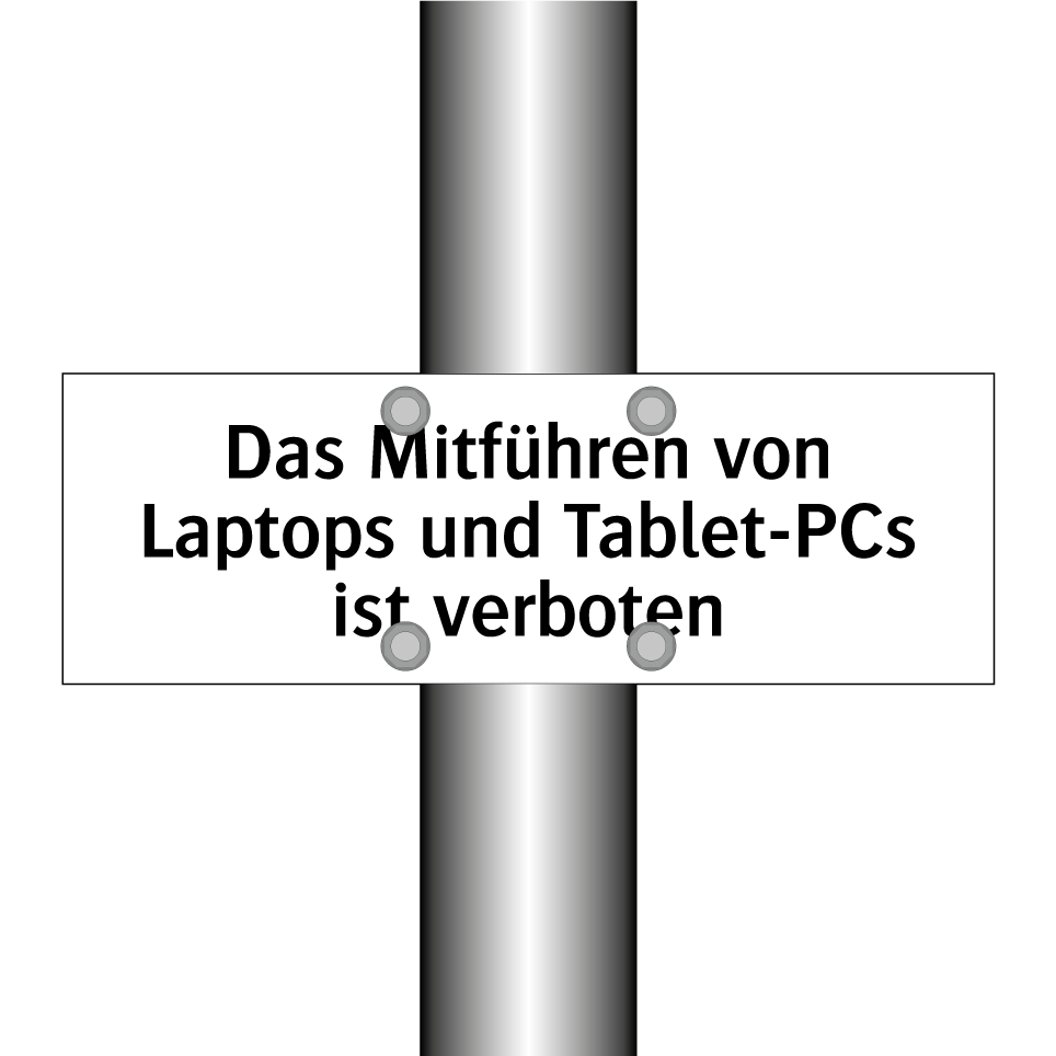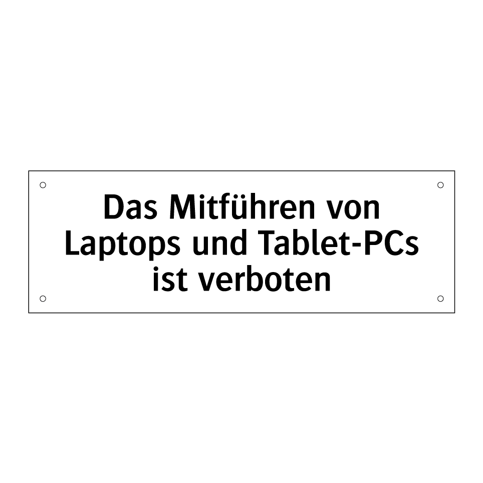 Verbotsschild mit dem Text Das Mitführen von Laptops und Tablet-PCs ist verboten