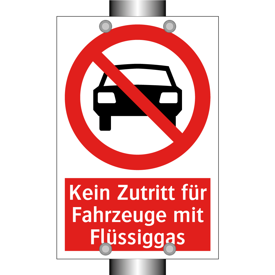 Verbotsschild mit dem Text Kein Zutritt für Fahrzeuge mit Flüssiggas