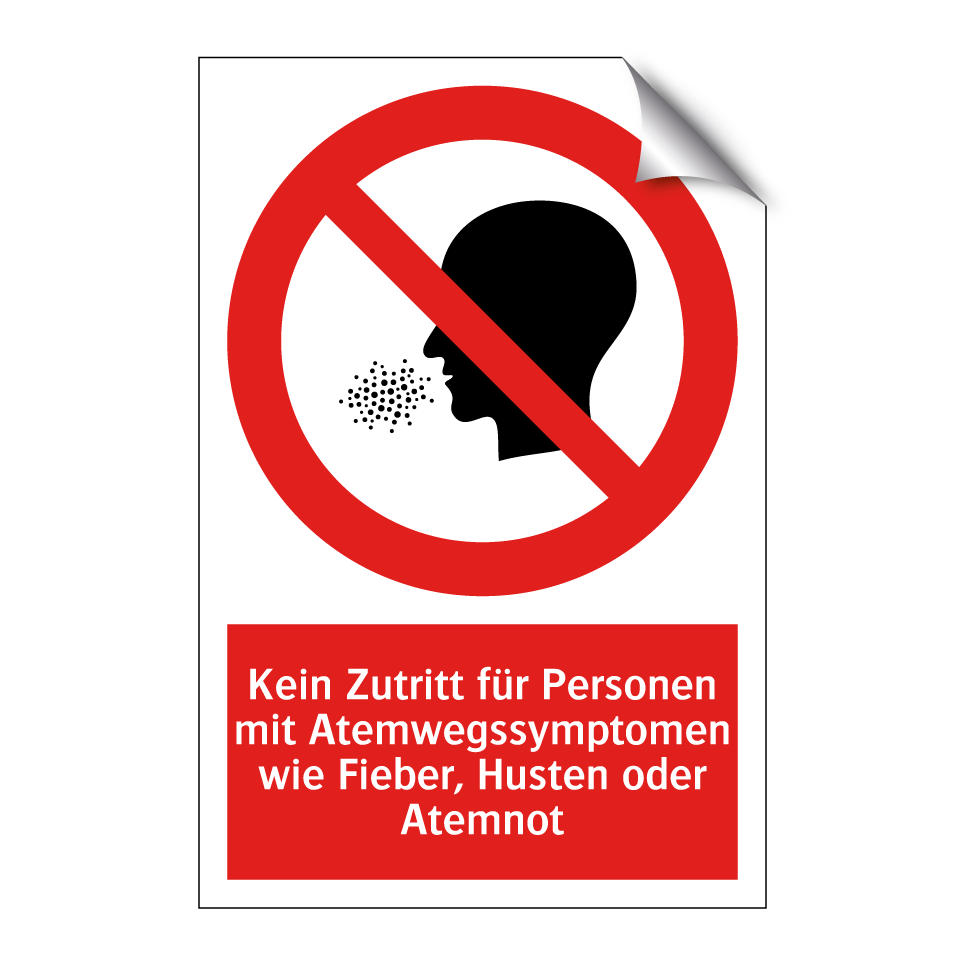 Verbotsschild mit dem Text Kein Zutritt für Personen mit Atemwegssymptomen wie Fieber, Husten oder Atemnot